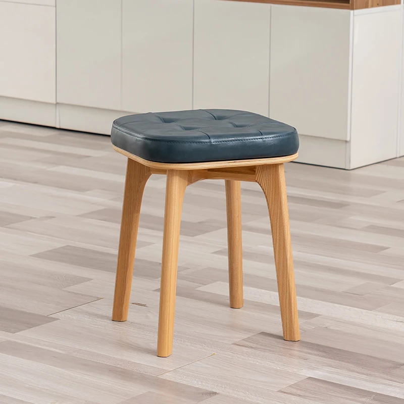 Nordic Vintage Low Stool - Stylish Square Ottoman for Living Room and Dining, Versatile Wooden Makeup Bench, Modern Minimalist Soft Padded Leather Seat, Perfect for Shoe Changing and Home Décor