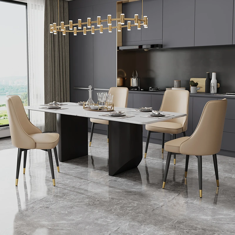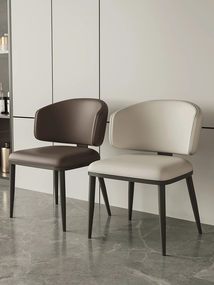 Modern Leather Dining Chair with Backrest - Elegant and Luxurious Design for Home Use, High-End Hotel Guest Seating, and Stylish Lounge Meetings - Trendy and Comfortable Chair