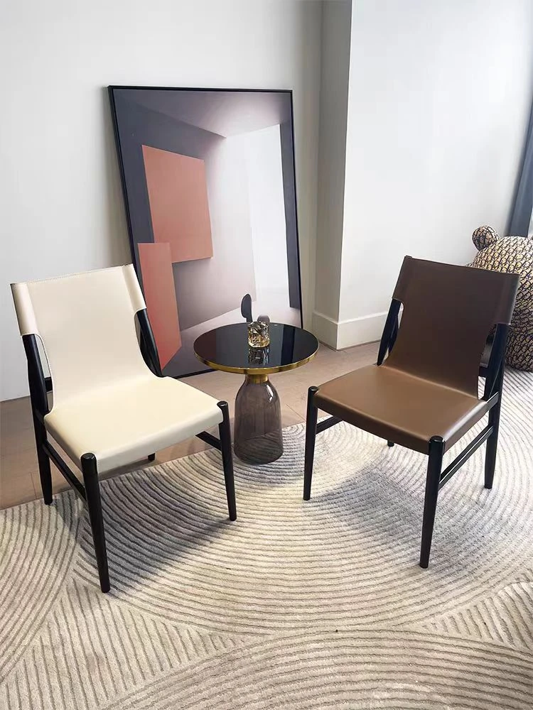 Italian Modern Minimalist Genuine Leather Dining Chair - Designer Backrest Chair for Home, Simple and Elegant Dining Table Seating