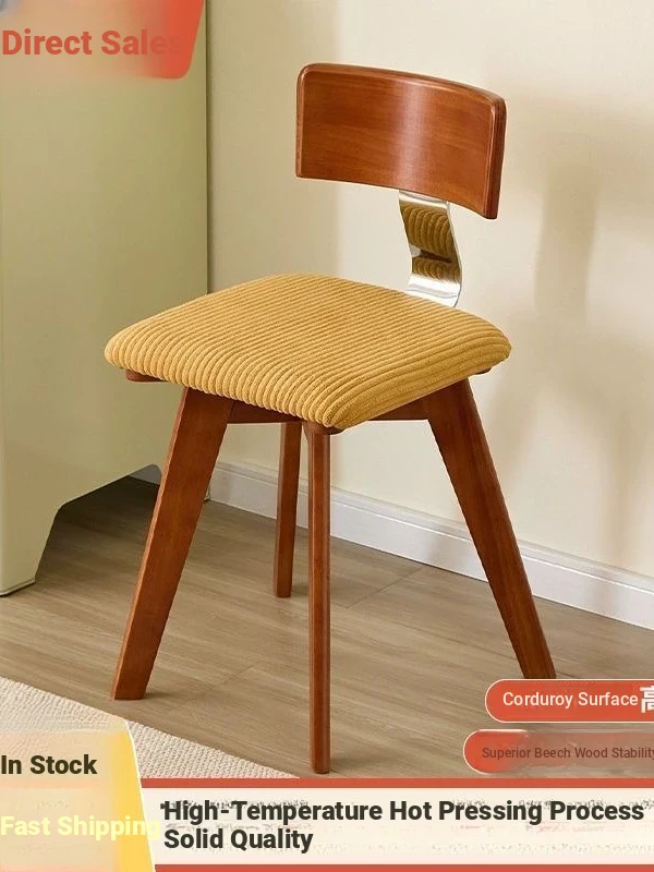 Vintage Scandinavian Solid Wood Dining Chair with Backrest – Wabi-Sabi Style Designer Makeup Stool – French Retro Accent Chair for a Chic Dining Experience