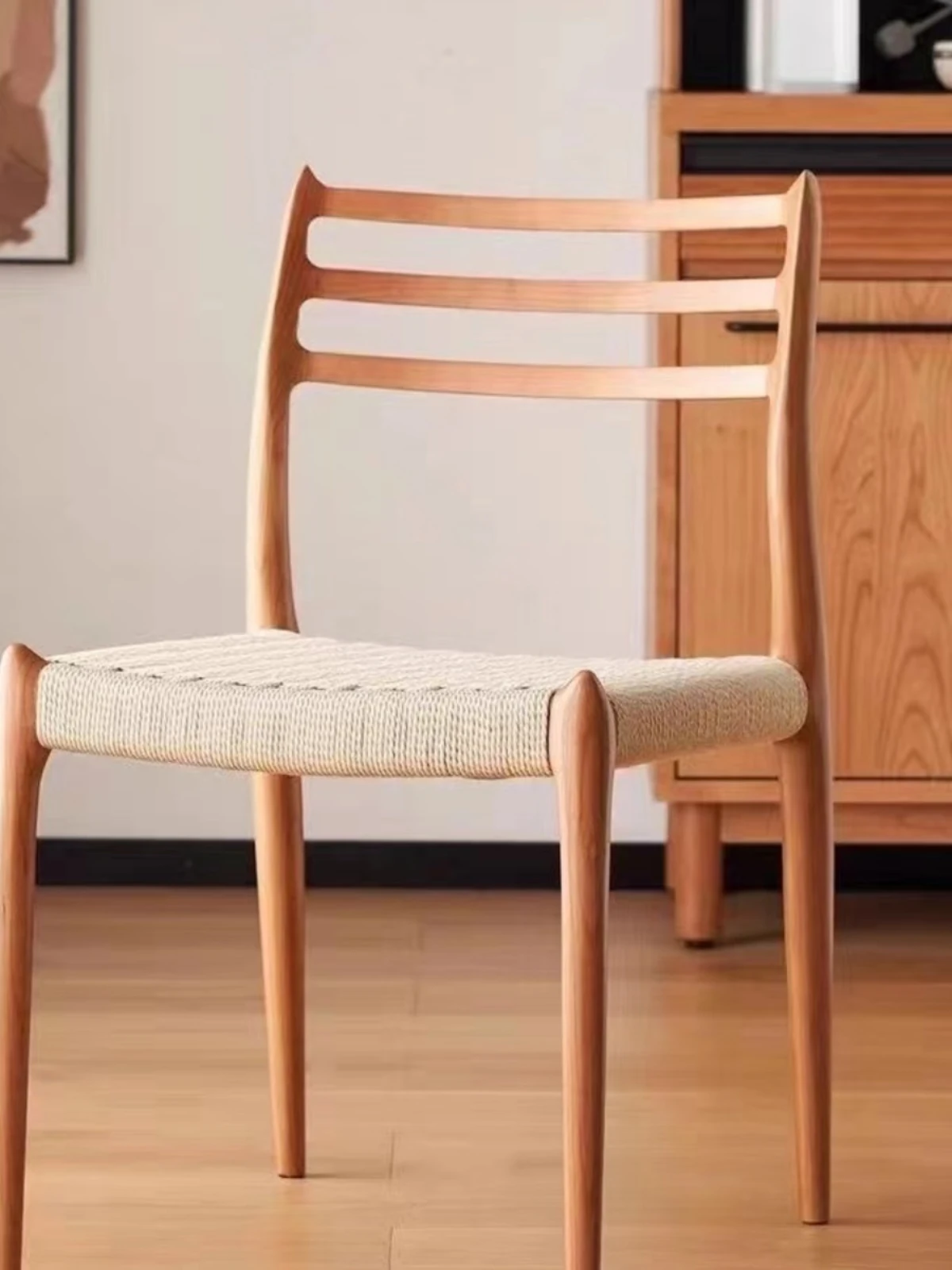 Nordic Solid Wood Woven Dining Chair - Rustic Rattan Design for Home, Minimalist Style for Study Desk or Coffee Table, Vintage Japanese-Inspired Rattan Chair