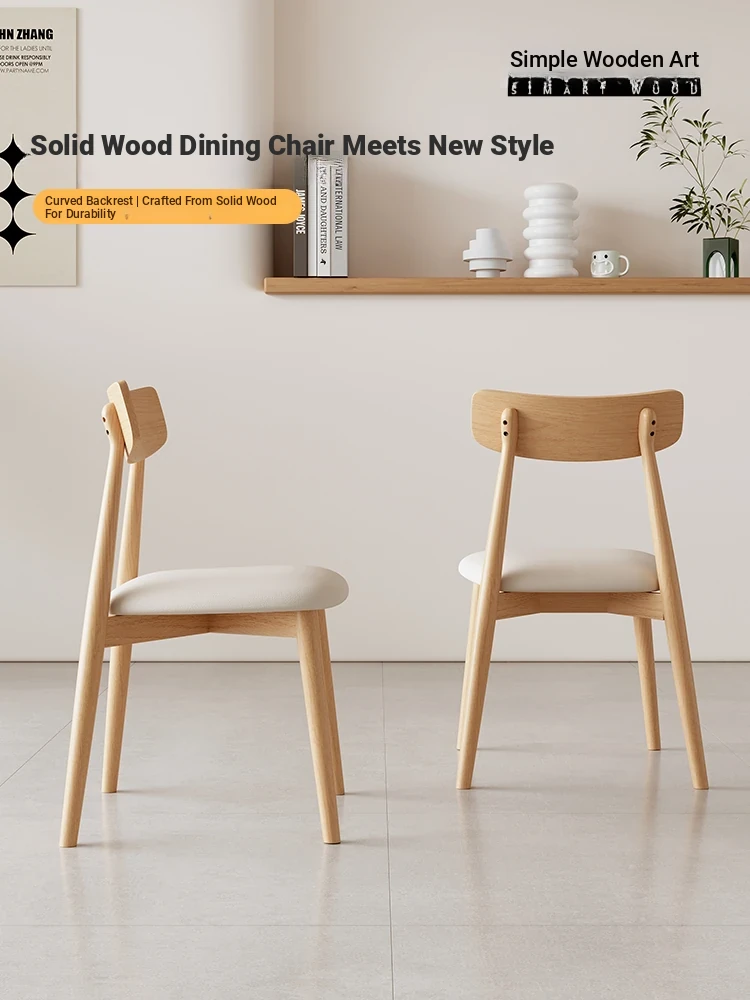 Free Shipping! Solid Wood Dining Chair - Minimalist Design for Cafés and Dessert Shops, Comfortable Wooden Backrest, Perfect for Home Use.