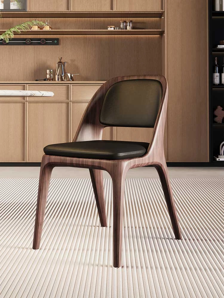 デザイナーによるイタリアンミニマル・ラグジュアリー実木レトロ高級真皮ダイニングチェア モダンシンプルデスク用会議チェア - 高級感あふれる洗練されたデザインで、心地よい食事や商談を演出します。