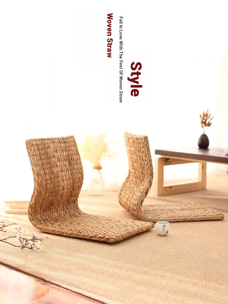 Natural Straw Tatami Backrest Chair - Cozy Floor Seat for Home, Dormitory & Bedroom, Perfect for Window Nooks, Japanese Style, Legless Design, Ideal for Relaxing & Lounging