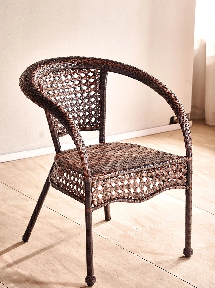 Single Dining Chair - Rattan Backrest Armchair for Outdoor Balcony - Minimalist Woven Seat for Home and Cafe Relaxation