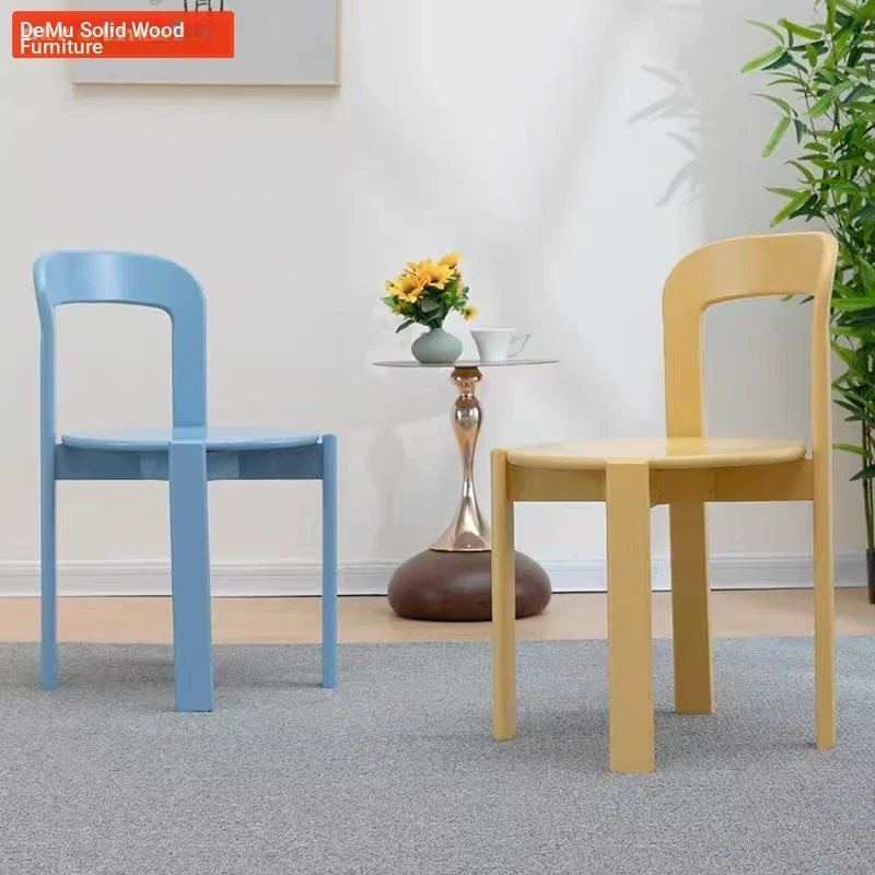 Designer Vintage-Inspired Colorful Cute Rounded Conference Chair - Dopamine French Cream Backrest Solid Wood Dining Chair
