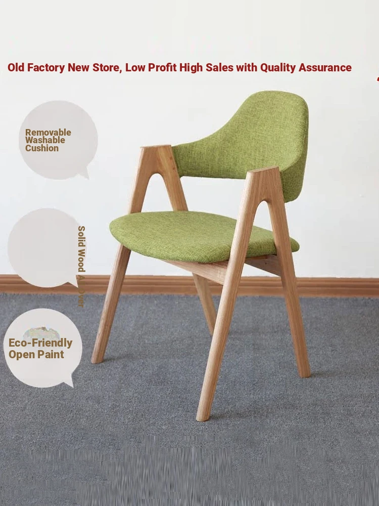 Modern Minimalist Japanese Solid Wood Dining Chair - High-End Upholstered Armchair for Home and Café Use, Natural Finish