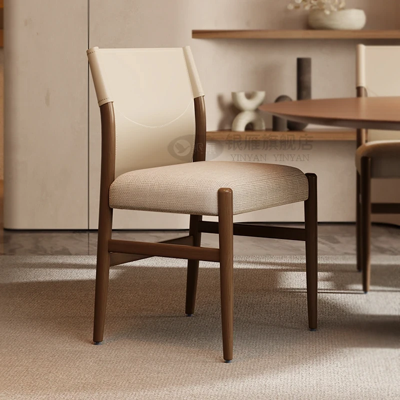 Italian Minimalist Saddle Leather Dining Chair - Modern Simple Home Restaurant Backrest Chair with Wabi-Sabi Design - Elegant and Luxurious Accent Chair for Your Dining Space