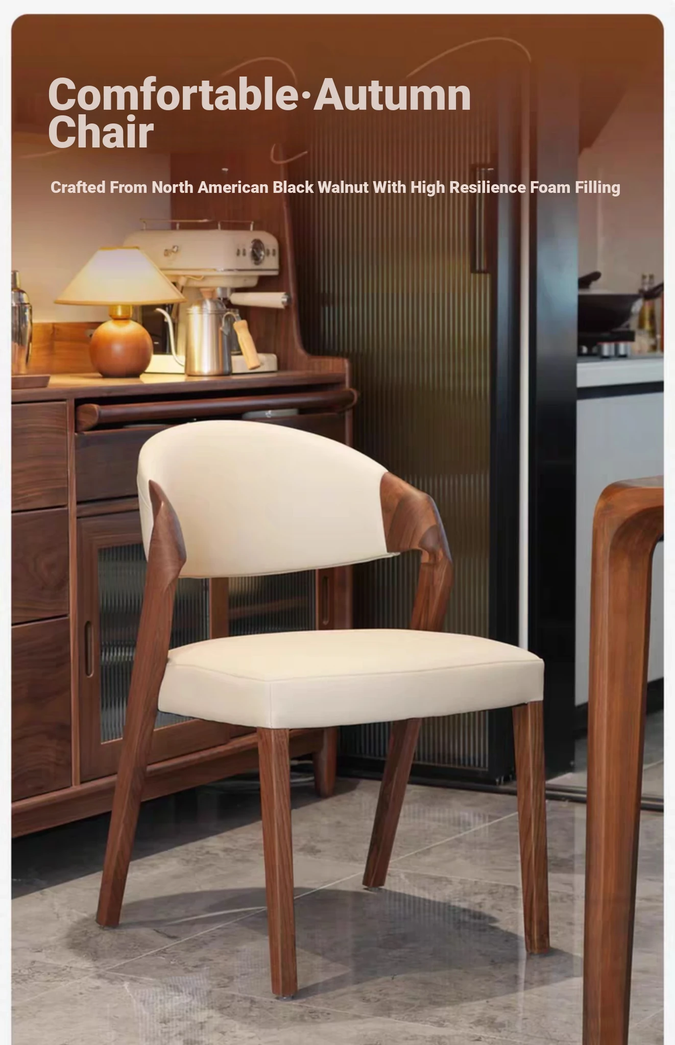 2025 New Arrival: North American Black Walnut Leather Upholstered Dining Chair - Solid Wood Backrest for Restaurant & Tea Table - Perfect for Cozy Autumn Gatherings