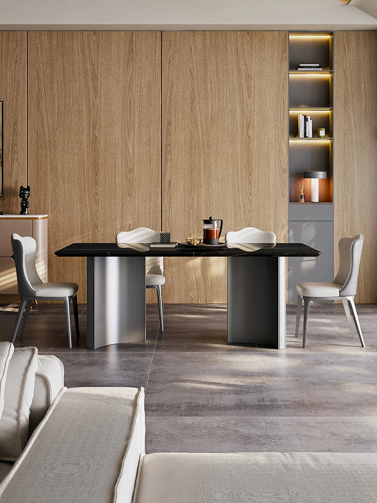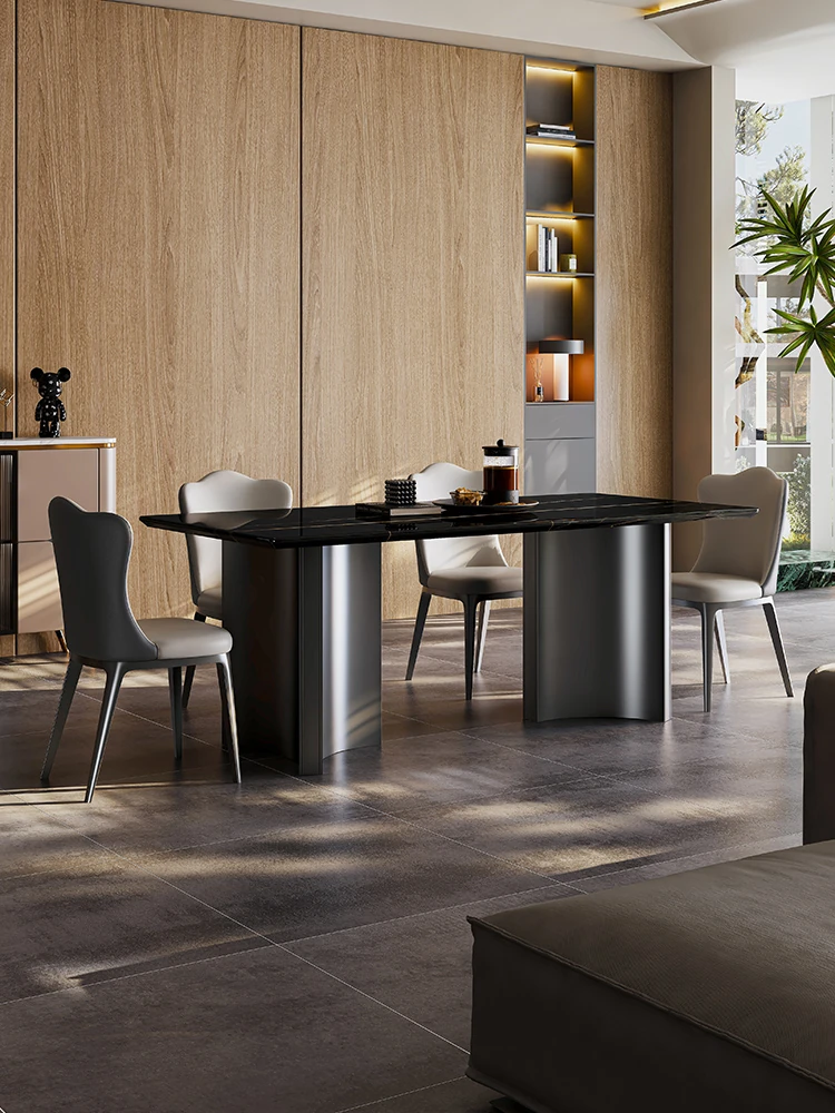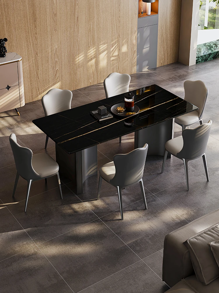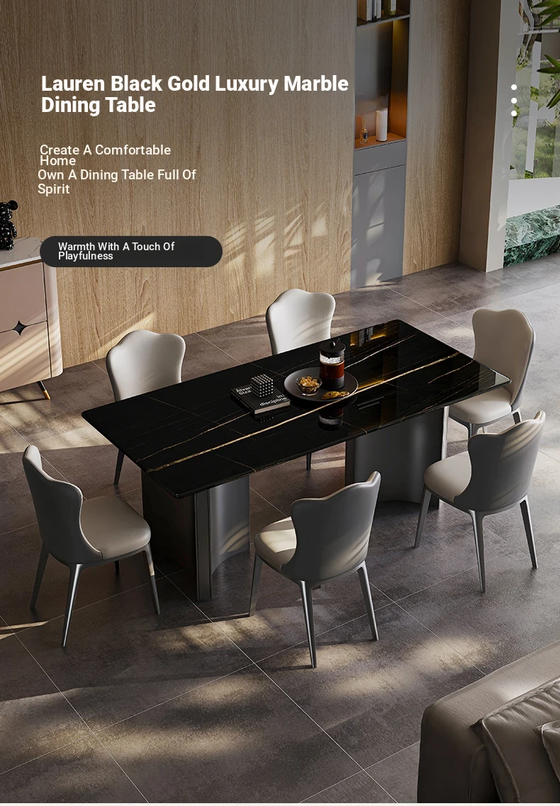 2025 New Arrival: Premium Natural Lauren Black Gold Marble Rectangular Dining Table - High-End Home Furniture from Foshan, Guangdong
