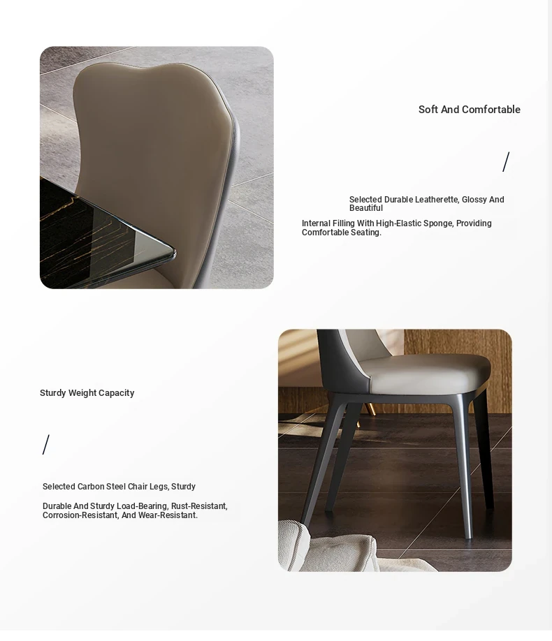 [Import] Lauren Black Gold Natural Luxury Stone Dining Table + Leather Cloud Dining Chair * 6 [Ten Penalties for Fake]]