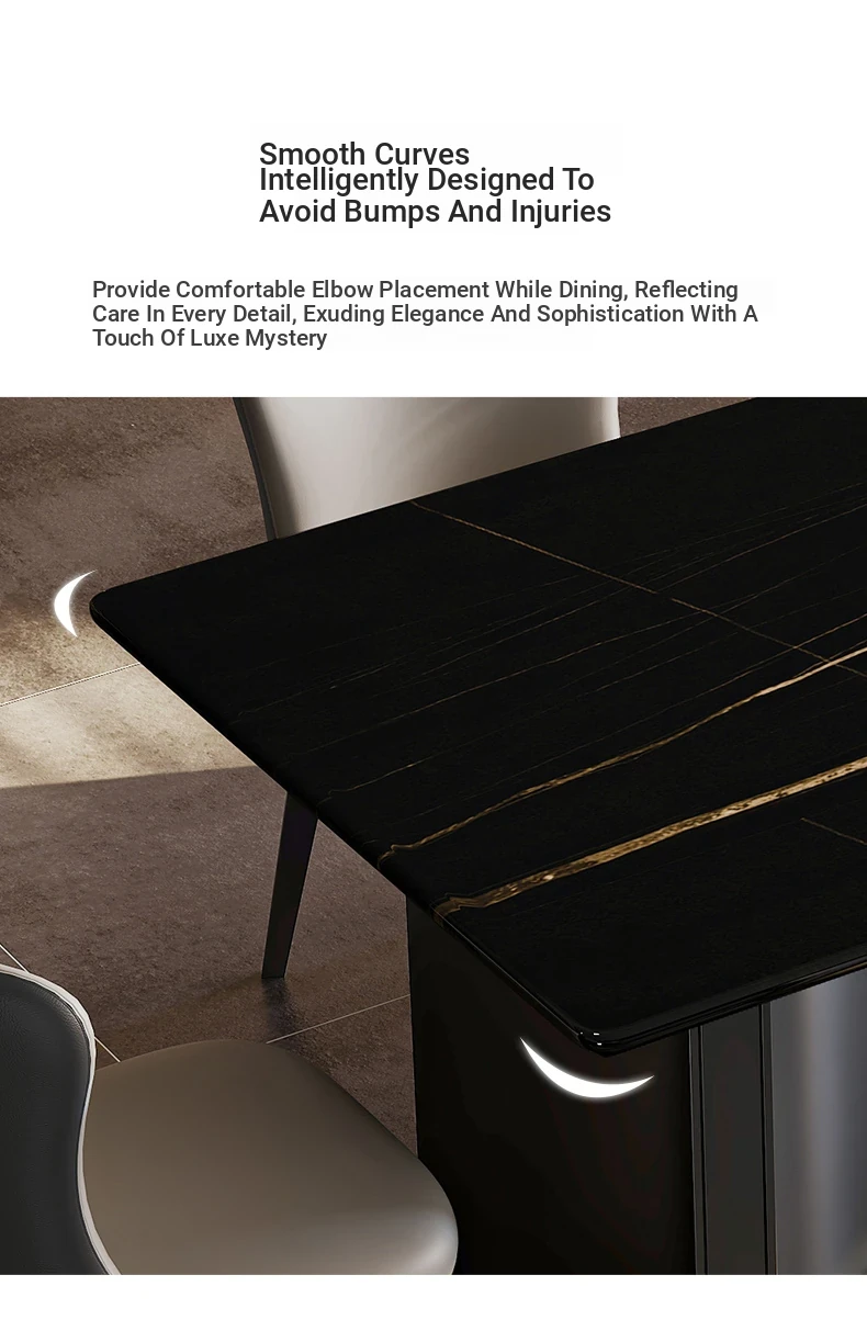 [Import] Lauren Black Gold Natural Luxury Stone Dining Table + Leather Cloud Dining Chair * 8 [Ten Penalties for Fake]]