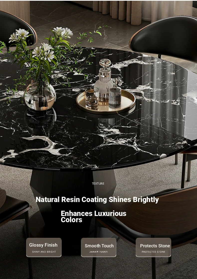 [S-Class] Black Rose Natural Luxury Stone Round Table + Eames Table*8
