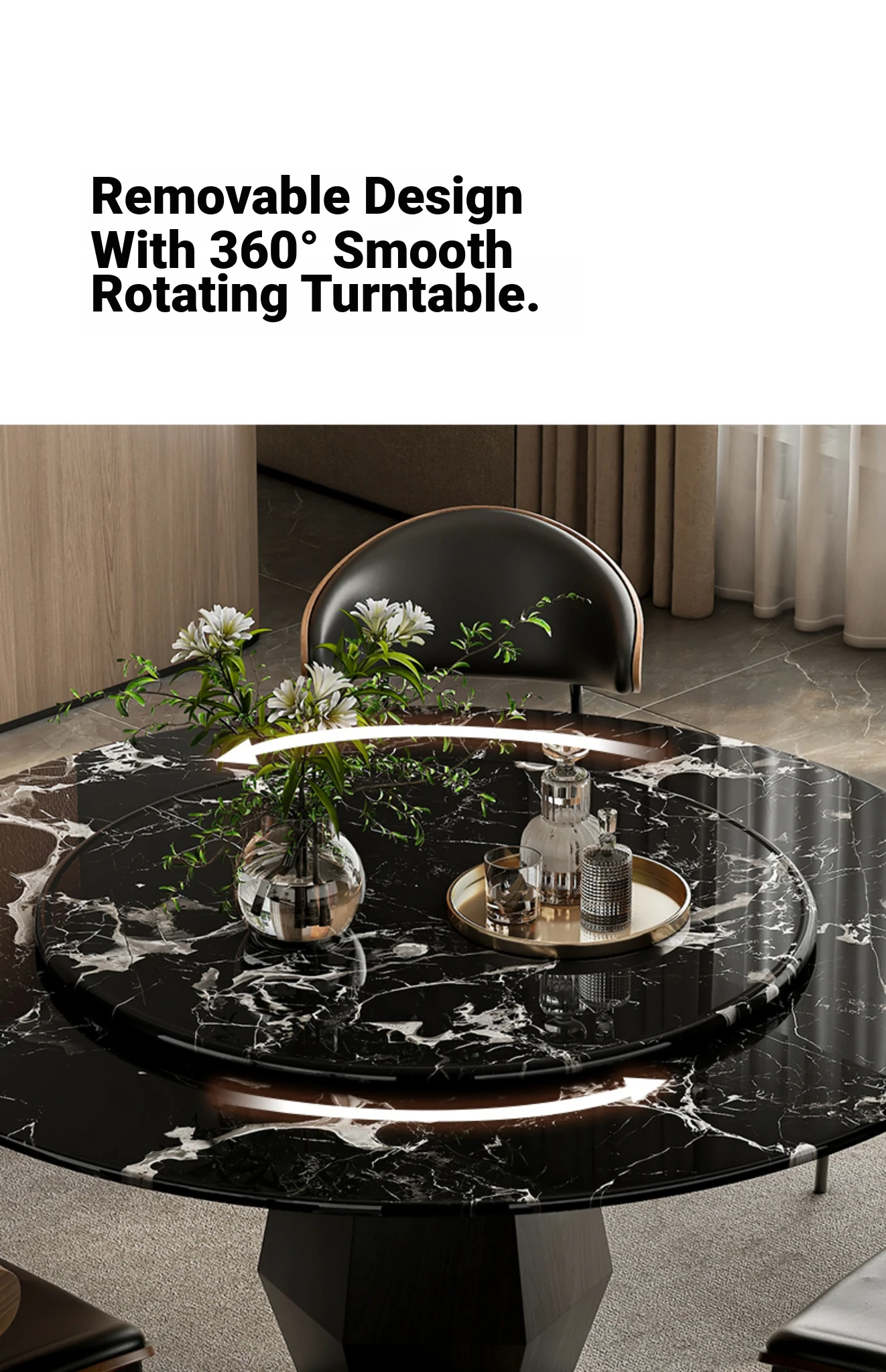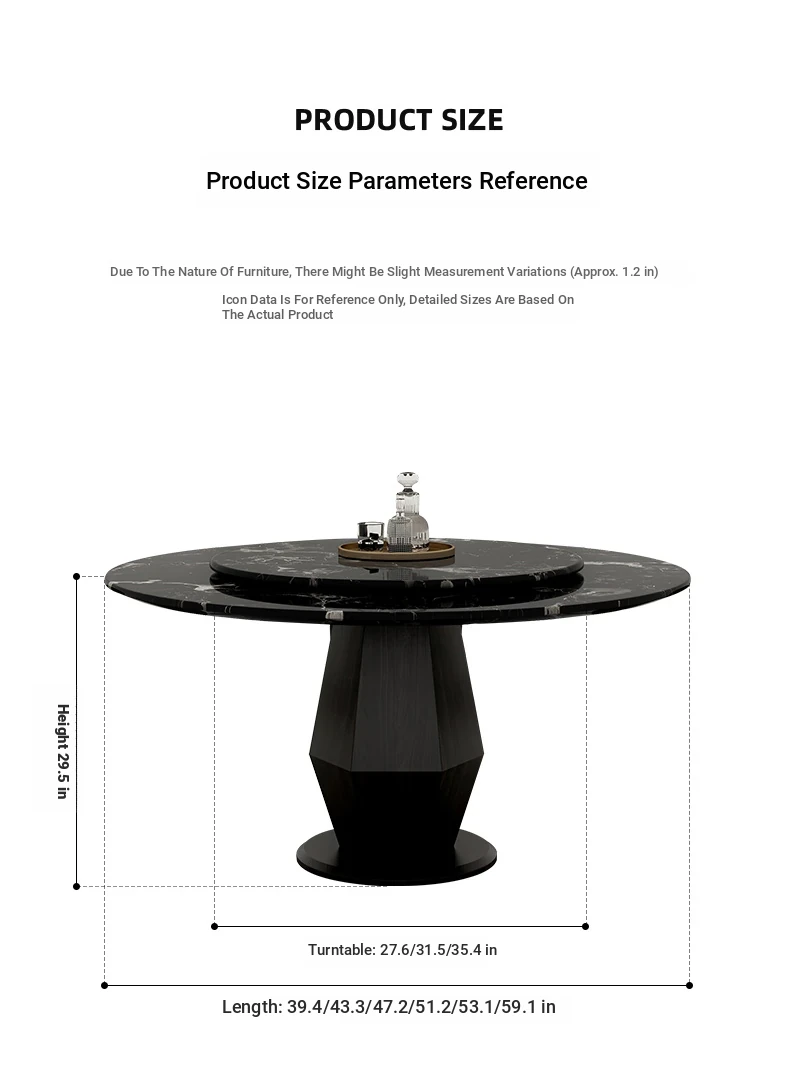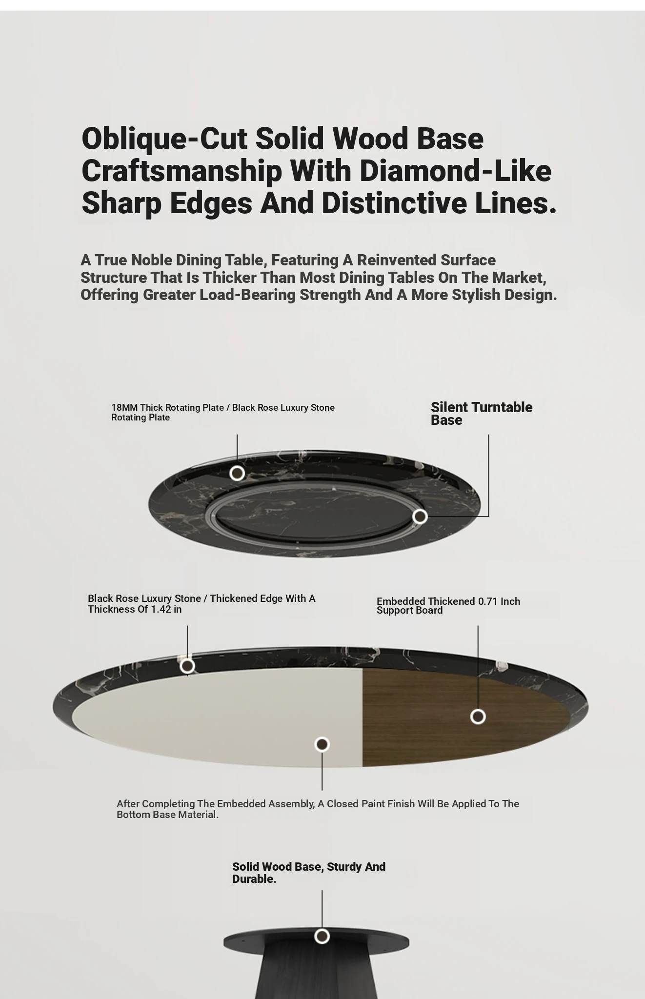 2025 New Luxury Natural Black Rose Marble Round Dining Table with Rotating Base - Perfect for Small Spaces, Stylish Solid Wood Design for Modern Homes