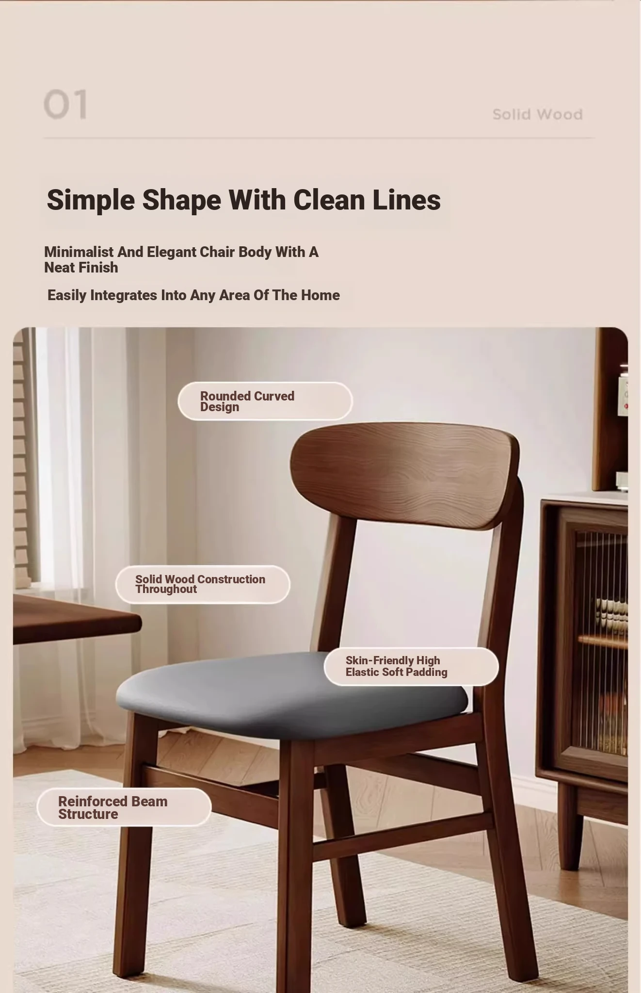 2025 New Solid Wood Dining Chair with Soft Backrest - Stylish and Comfortable for Home Dining, Office Desks, or Study Spaces. Perfect for Relaxation and Enhancing Your Interior!