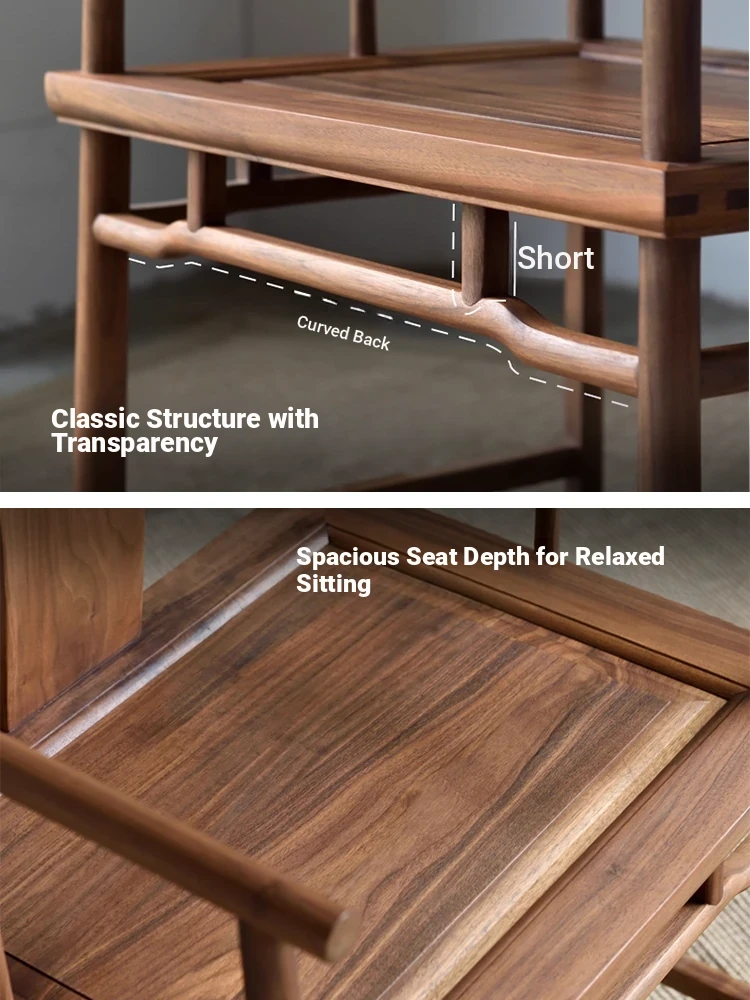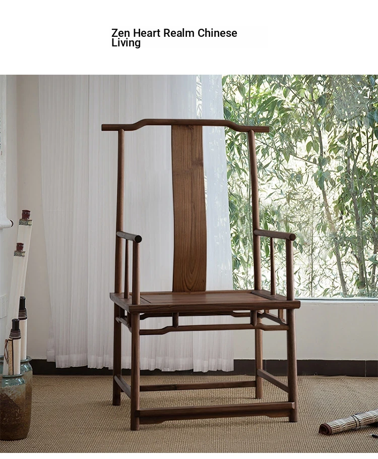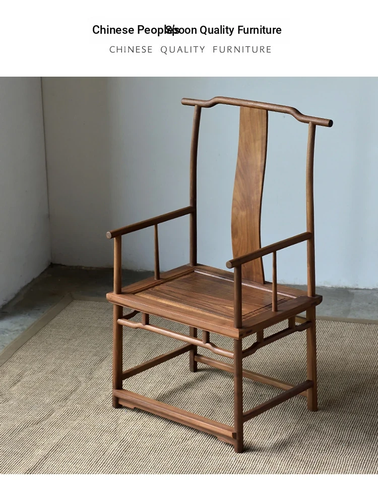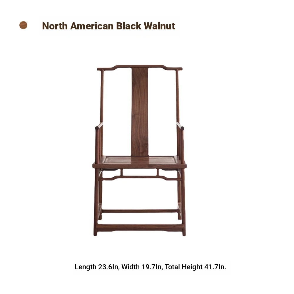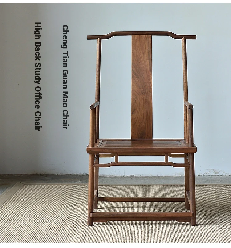 Antique-Style High-Back Official Hat Chair - Solid Wood Single Chair in Black Walnut, Perfect for Home Use, Elegant Design for Traditional Chinese Decor