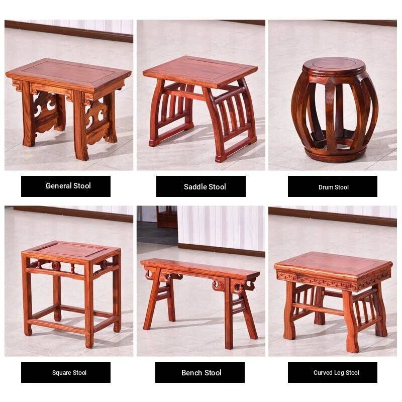 Antique-Style Solid Elm Stool - Ming and Qing Dynasty Inspired, Versatile Military Stool, Saddle Stool, Drum Stool, Square Stool, Long Bench, Curved Leg Stool, Perfect for Hotels and Elegant Spaces