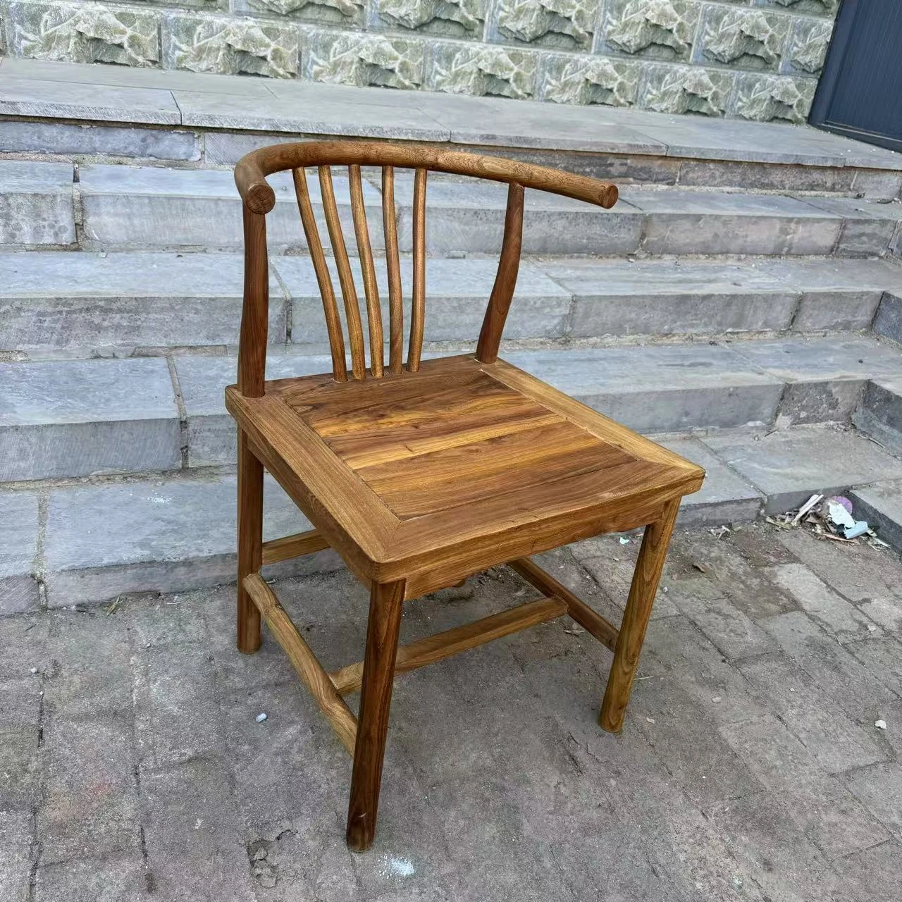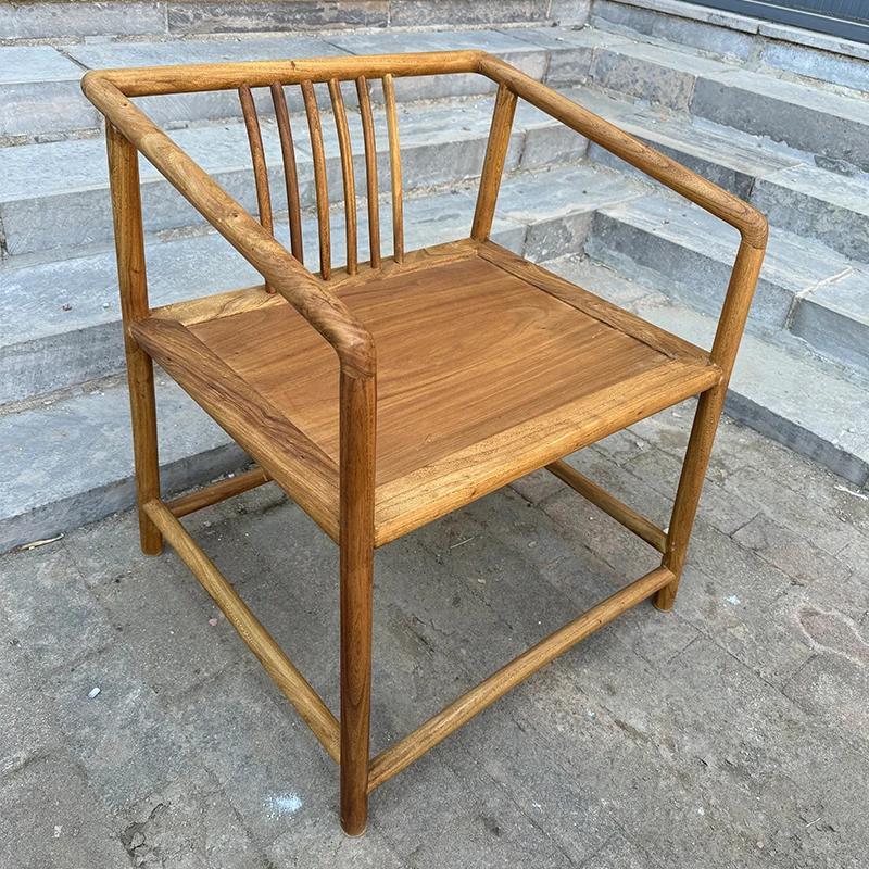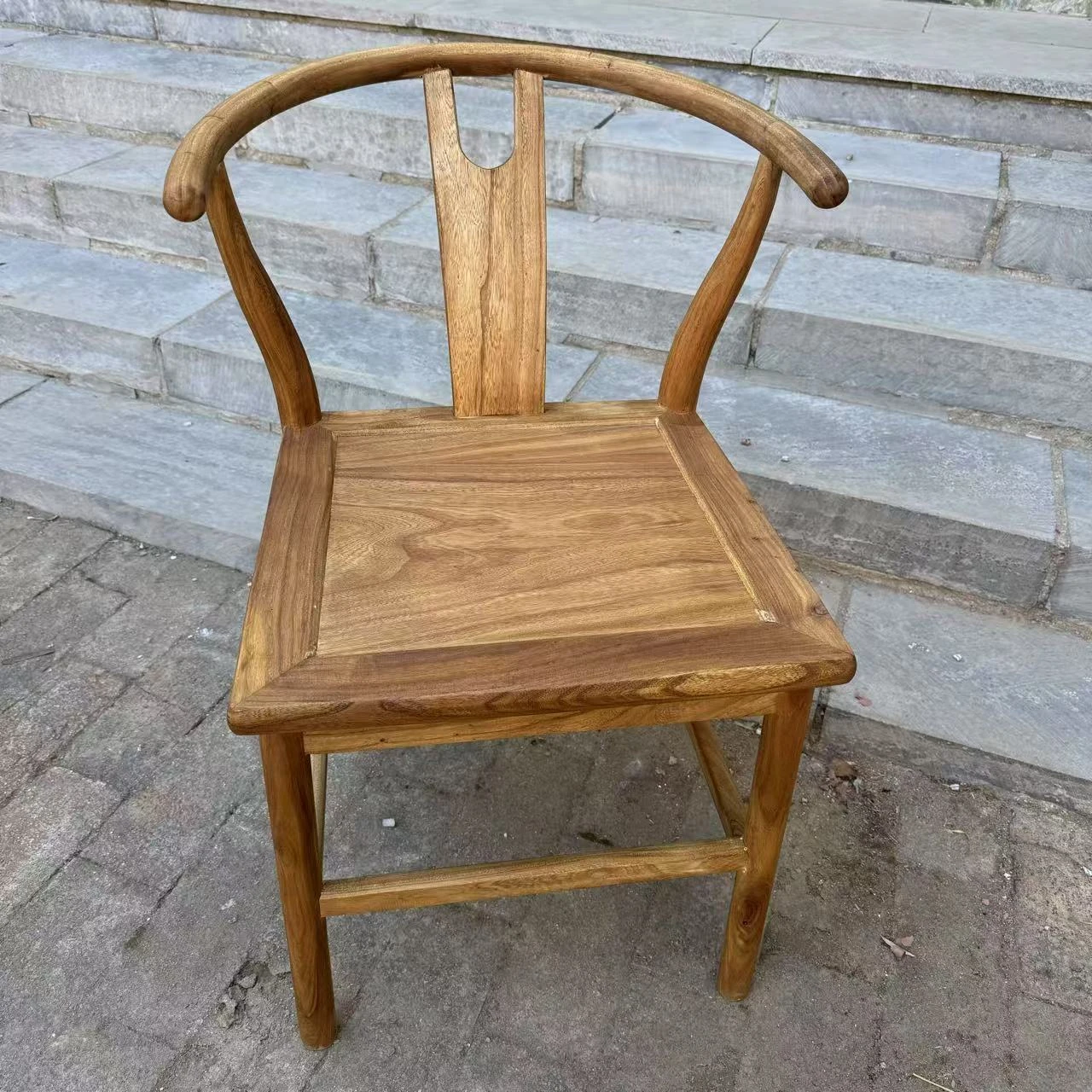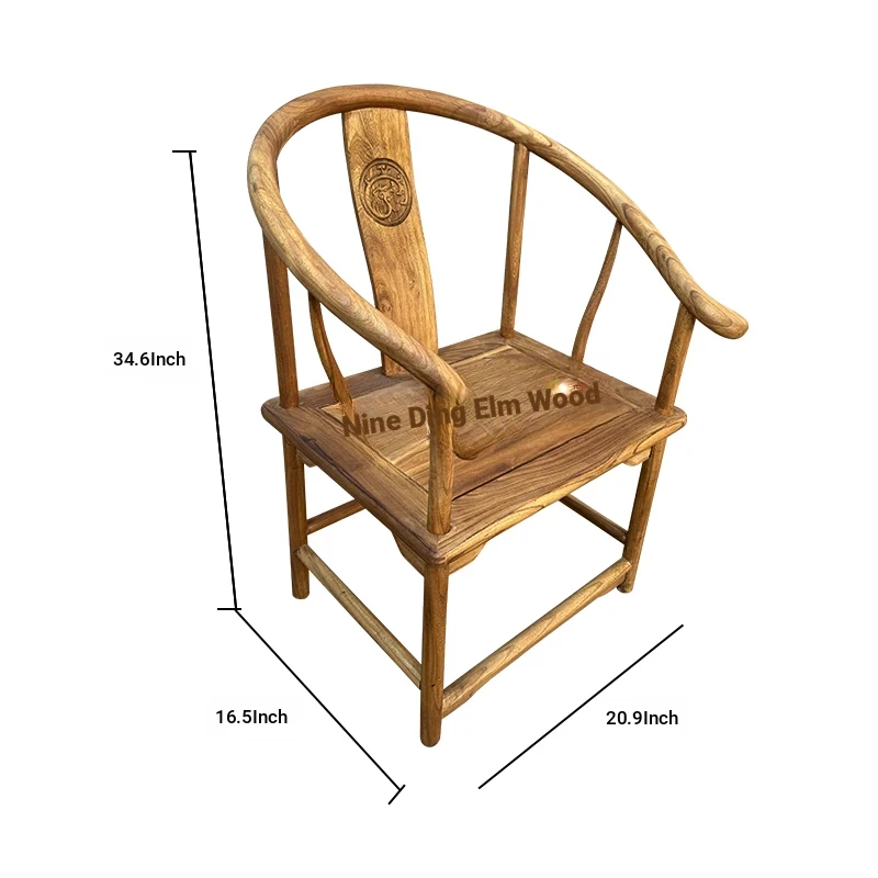 Authentic Chinese Elm Wood Tea Chair and Table Set - High-End Solid Wood Master Chair, Classic Ming-Style Round Chair, Vintage Aesthetic Dining Chair for Elegant Tea Ceremonies