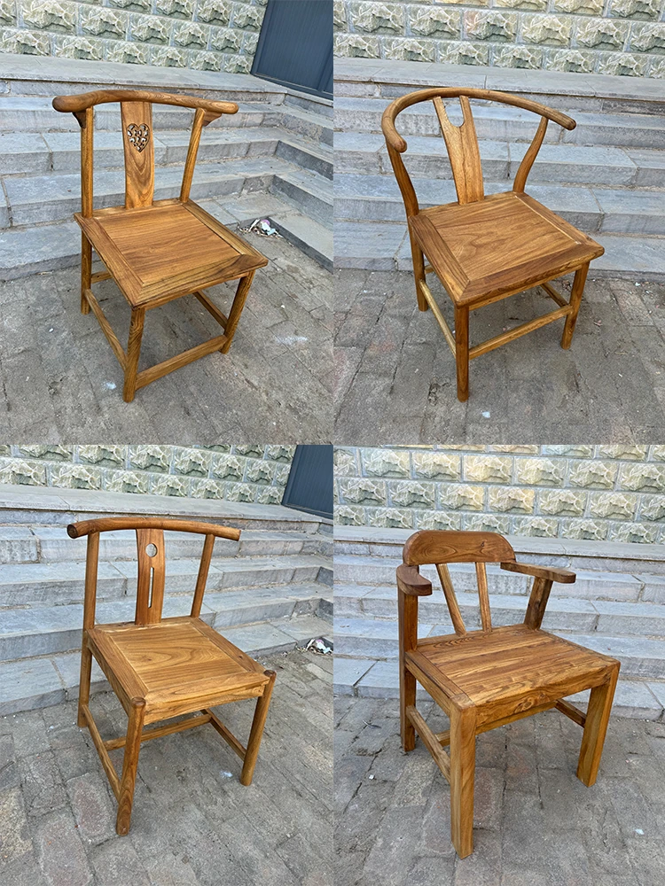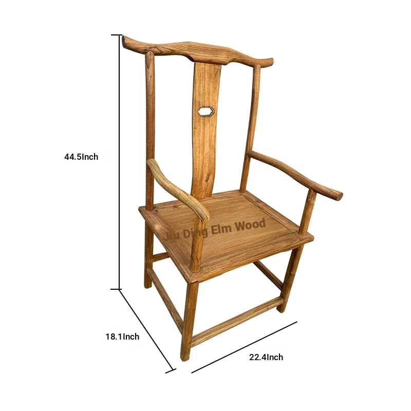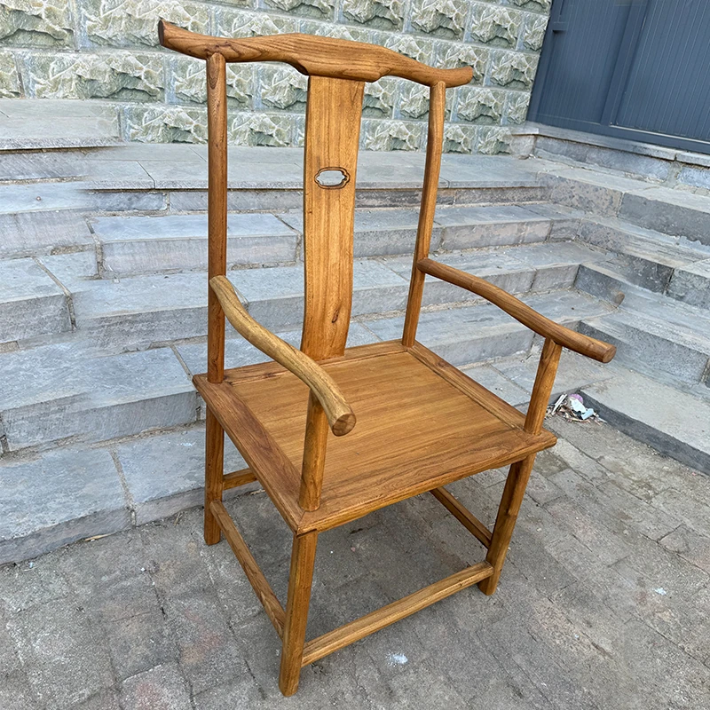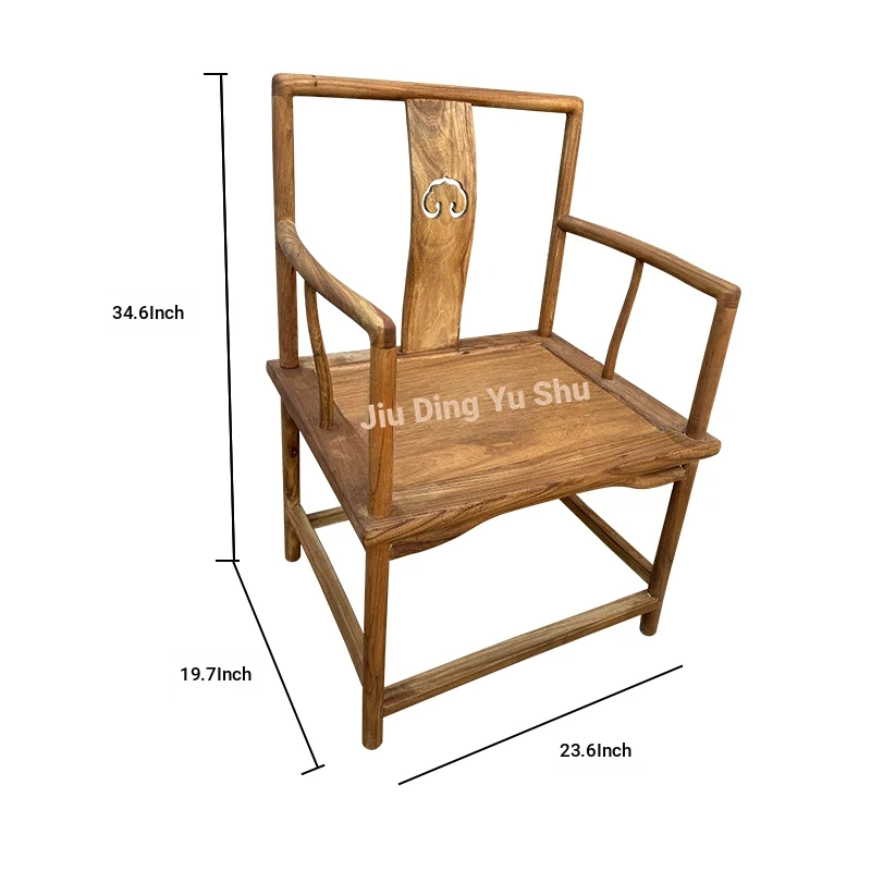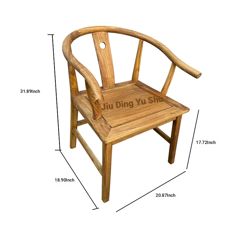 Authentic Chinese Elm Wood Tea Chair and Table Set - High-End Solid Wood Master Chair, Classic Ming-Style Round Chair, Vintage Aesthetic Dining Chair for Elegant Tea Ceremonies