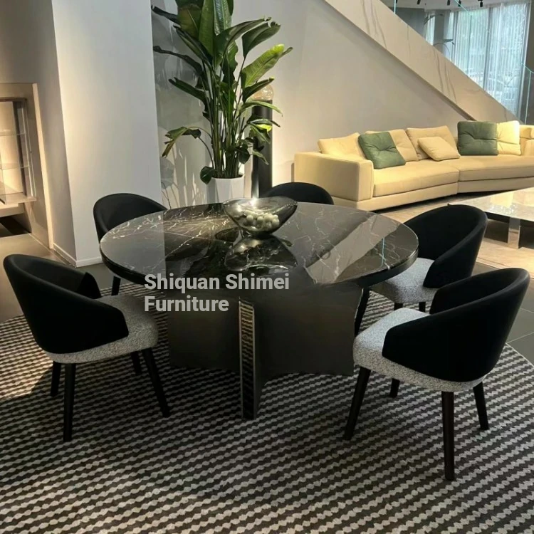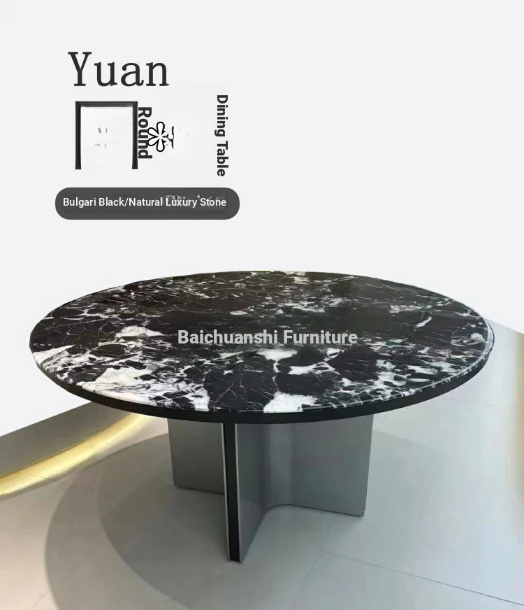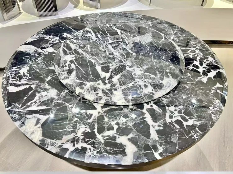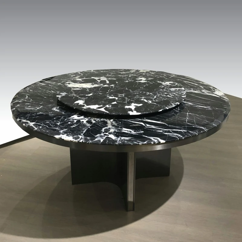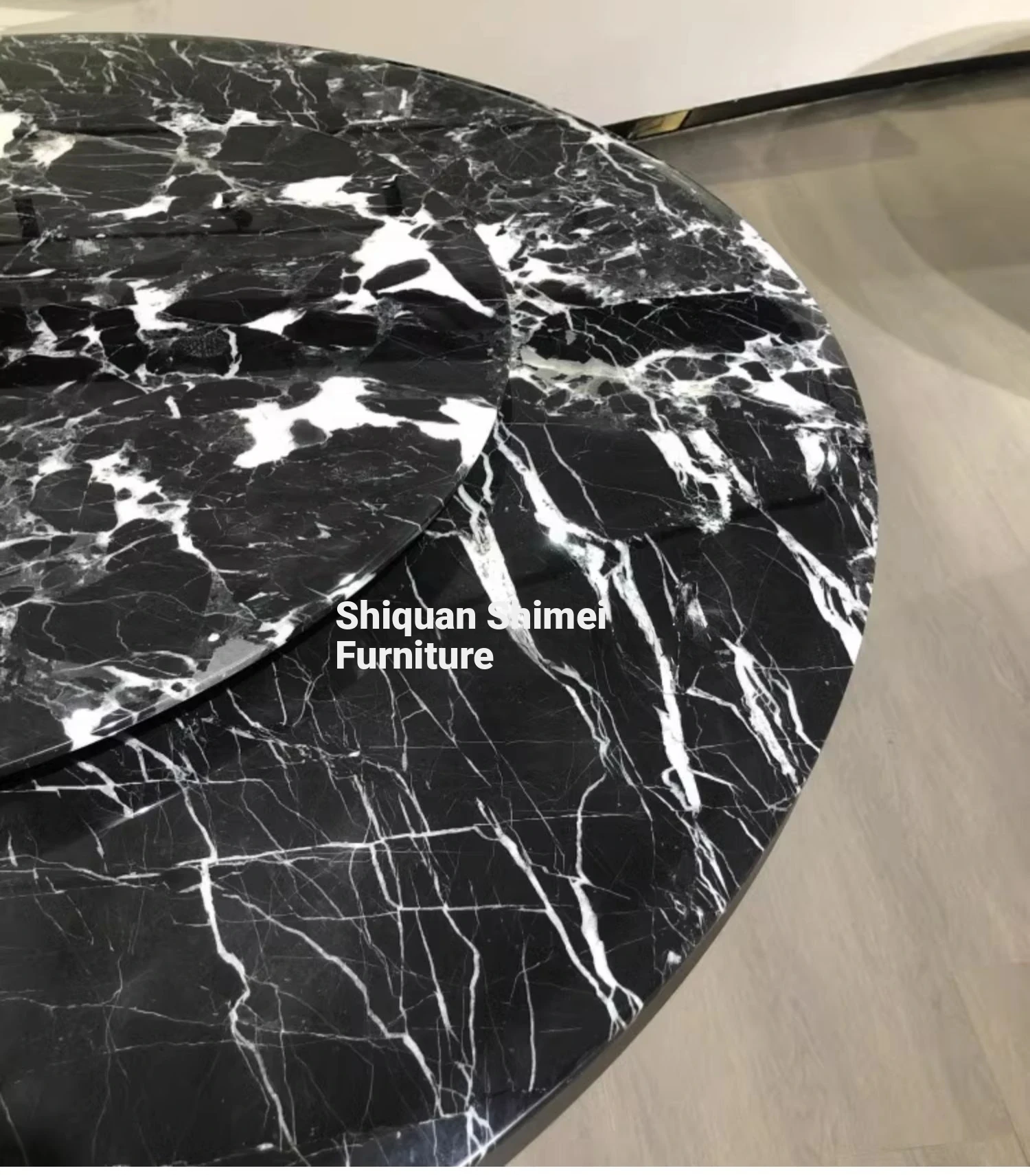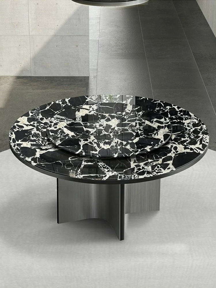 Bvlgari Black Luxury Round Dining Table - Elegant Napoleon Natural Marble with Rotating Tray for Upscale Villas