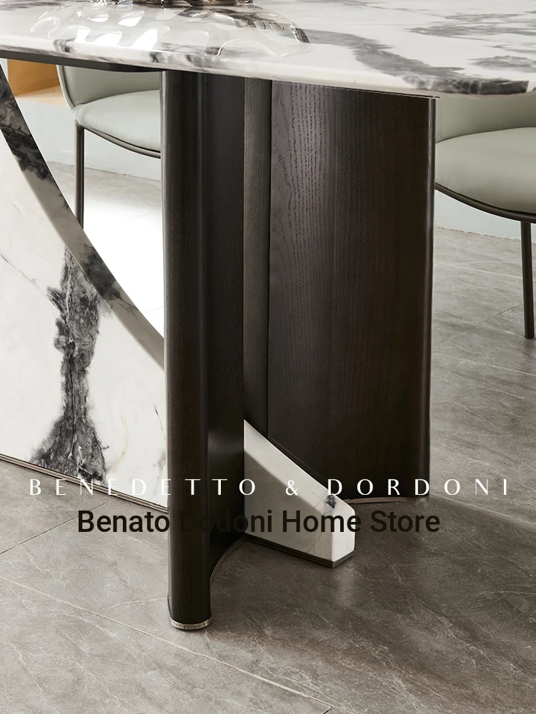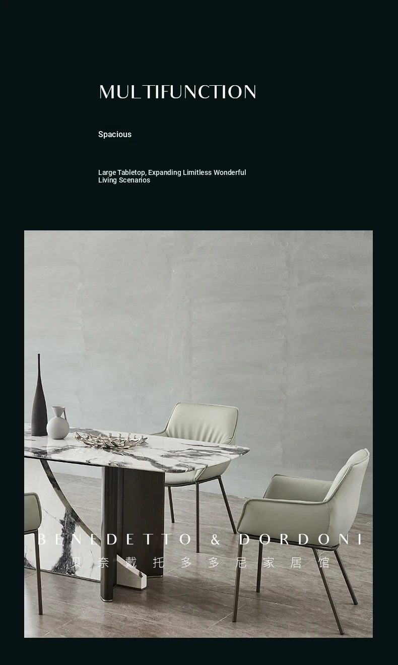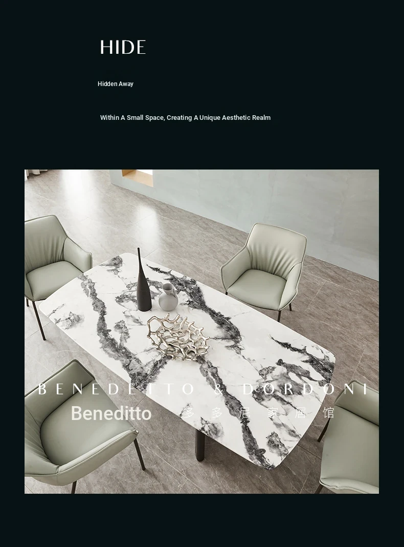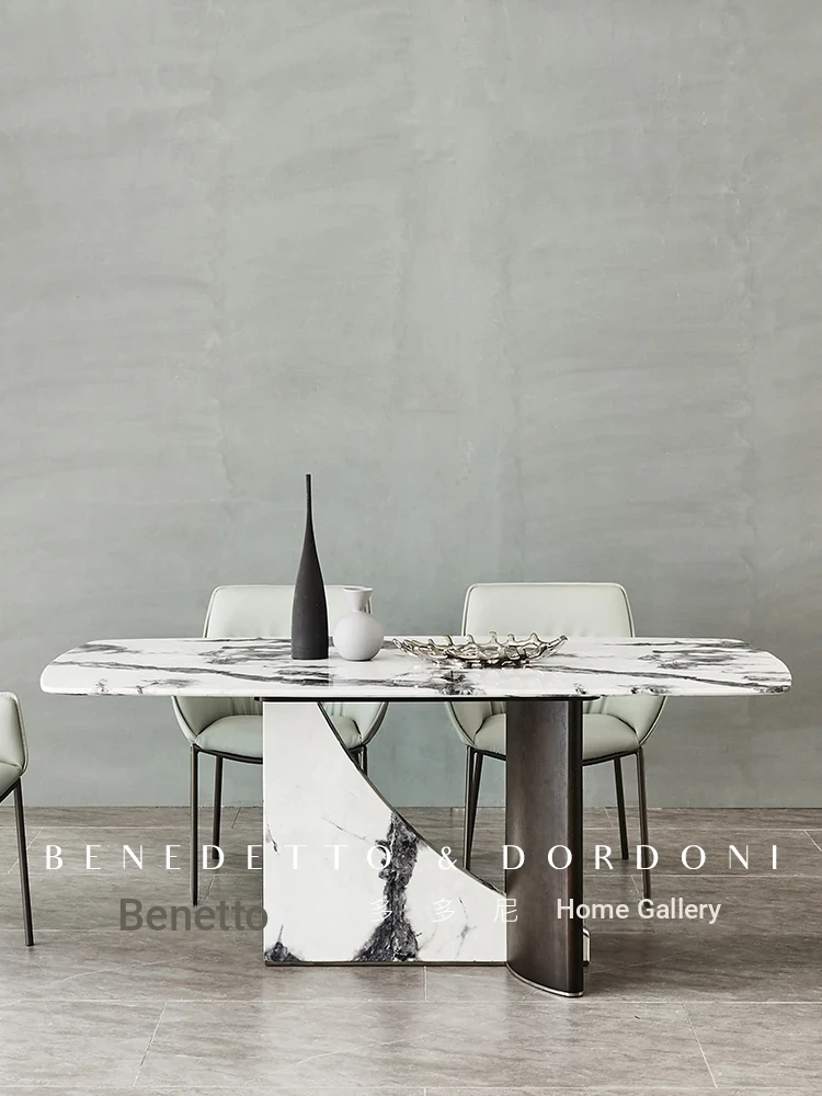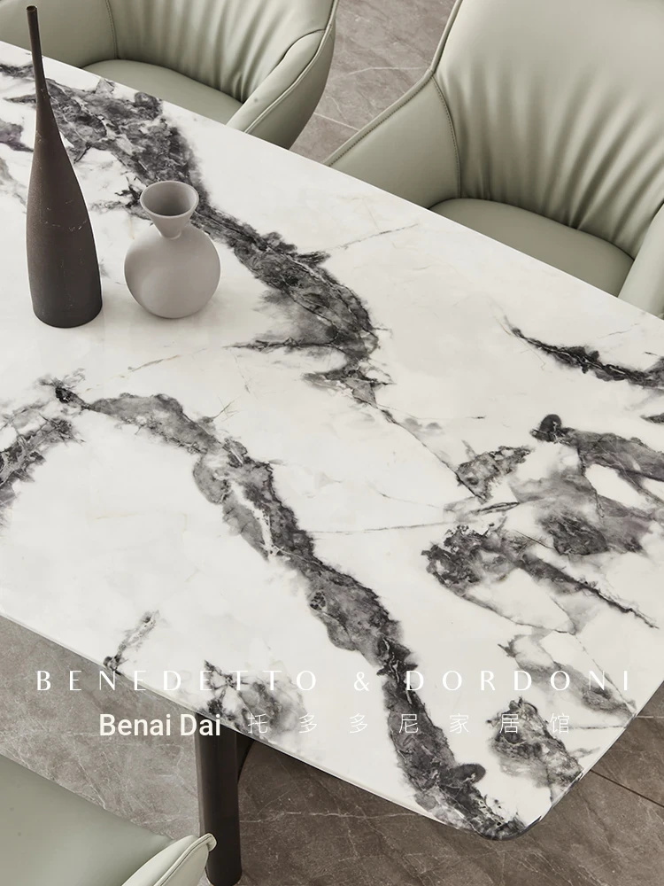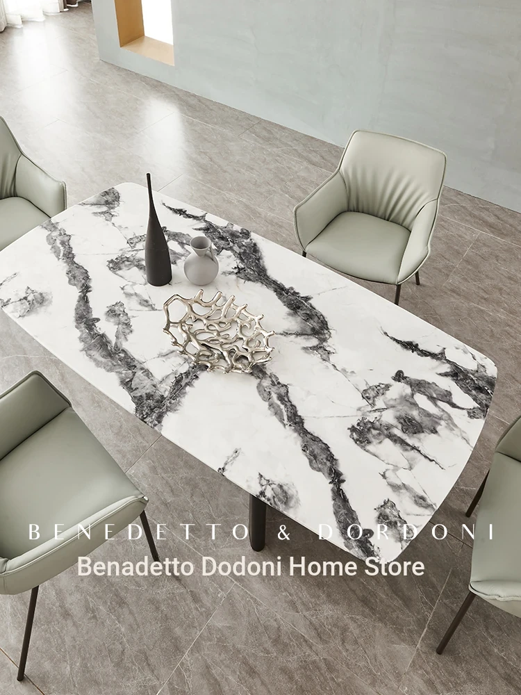 Designer Italian Luxury Marble Dining Table and Chair Set - Elegant White Rectangular Table for Home Use, Perfect for Sophisticated Dining Experiences