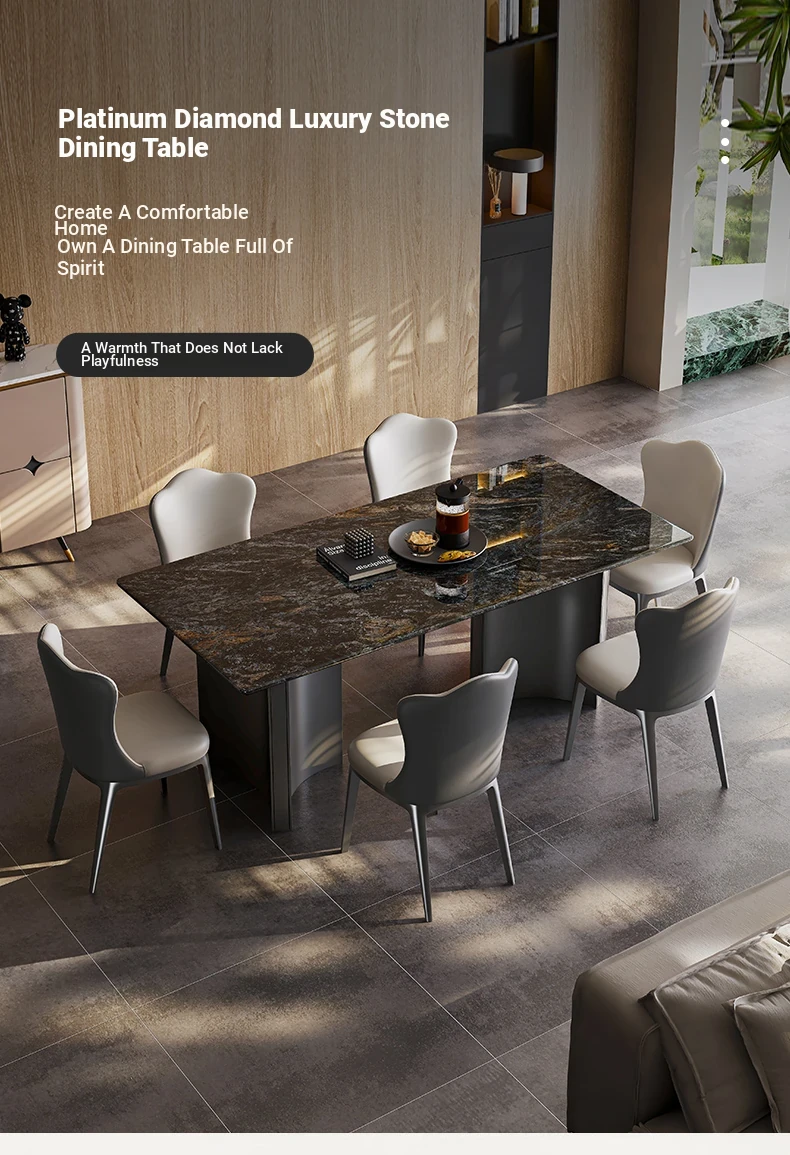[Class A Import] Platinum Diamond Natural Luxury Stone Dining Table [Fake One Penalty Ten] + Leather Cloud Dining Chair * 8