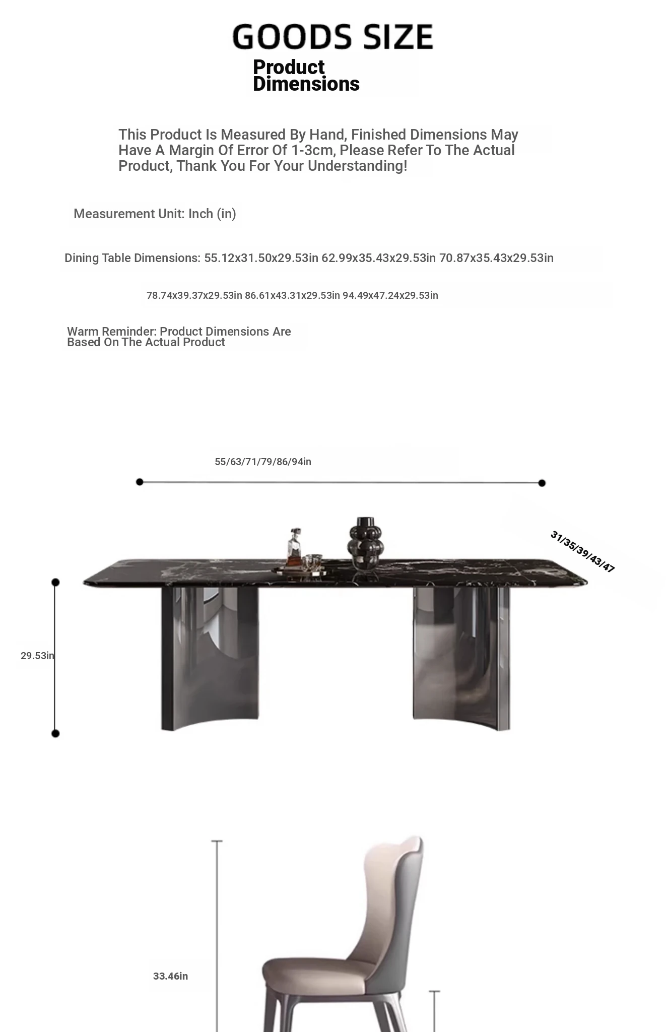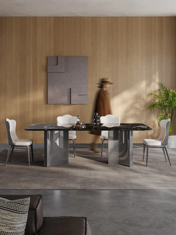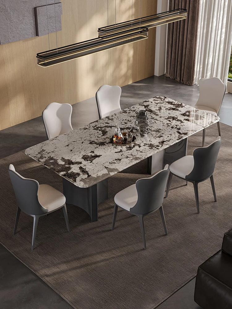 Platinum Diamond-Natural Luxury Stone Dining Table + Leather Cloud Dining Chair * 6