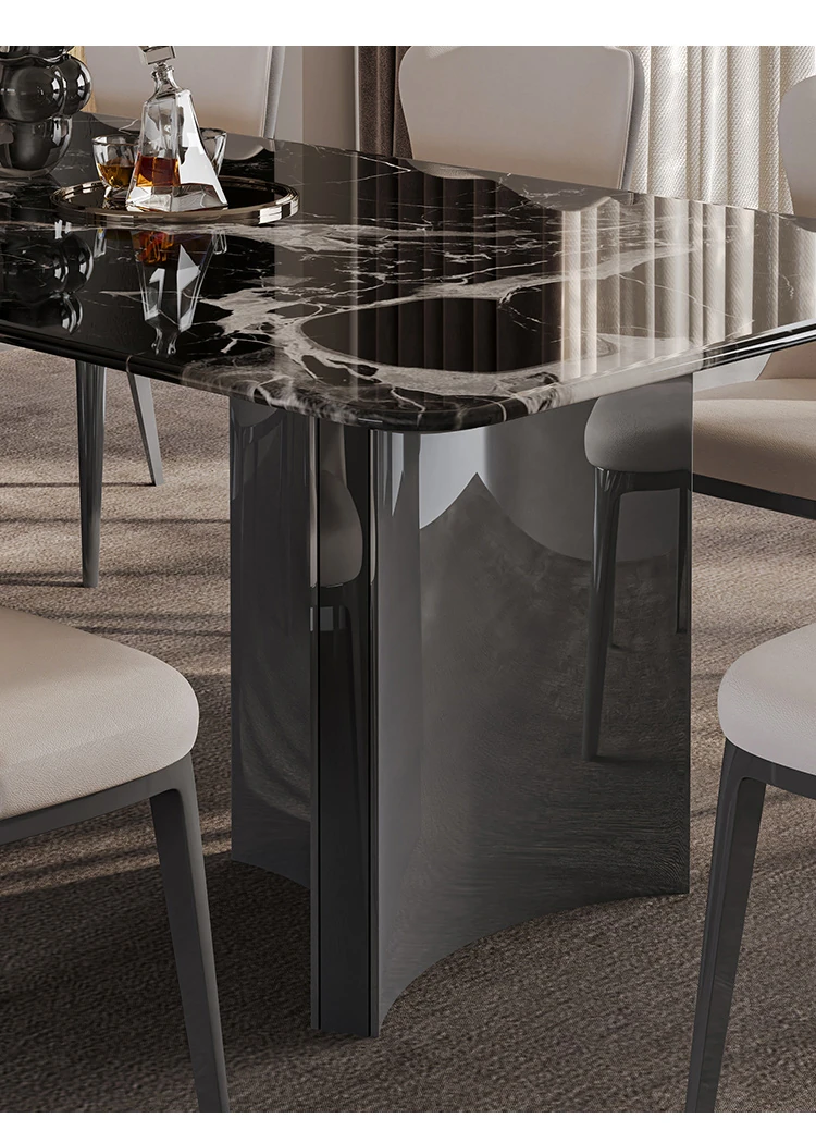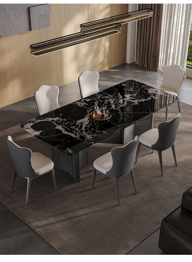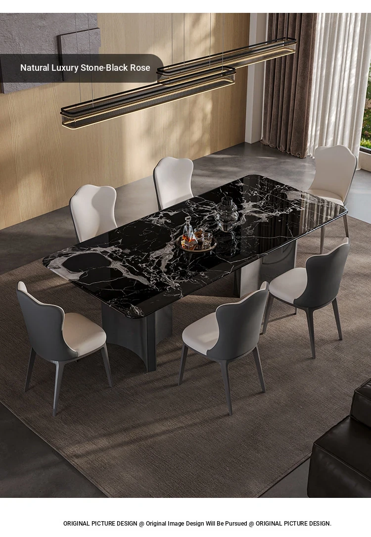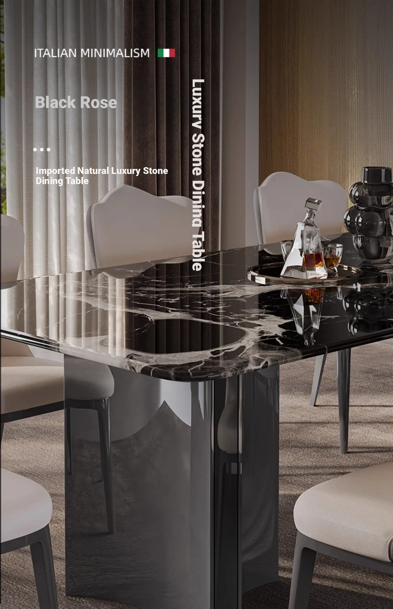 Black Rose · Natural Luxury Stone Dining Table + Leather Cloud Dining Chair * 6