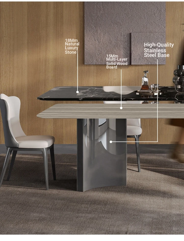 Platinum Diamond-Natural Luxury Stone Dining Table + Leather Cloud Dining Chair * 8