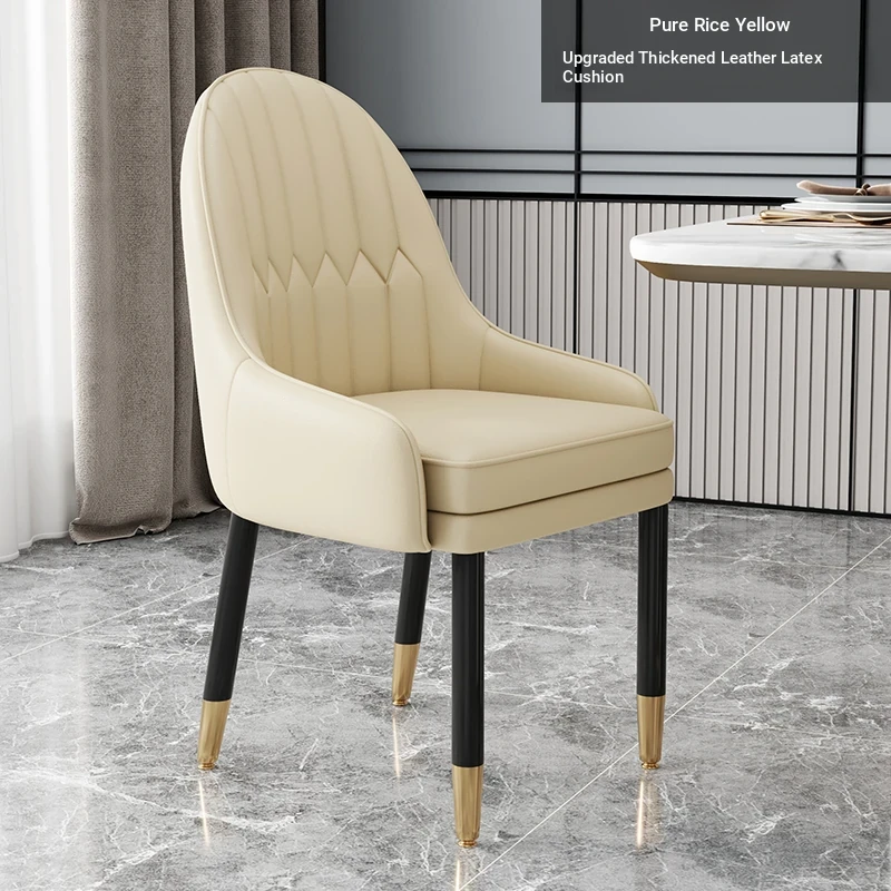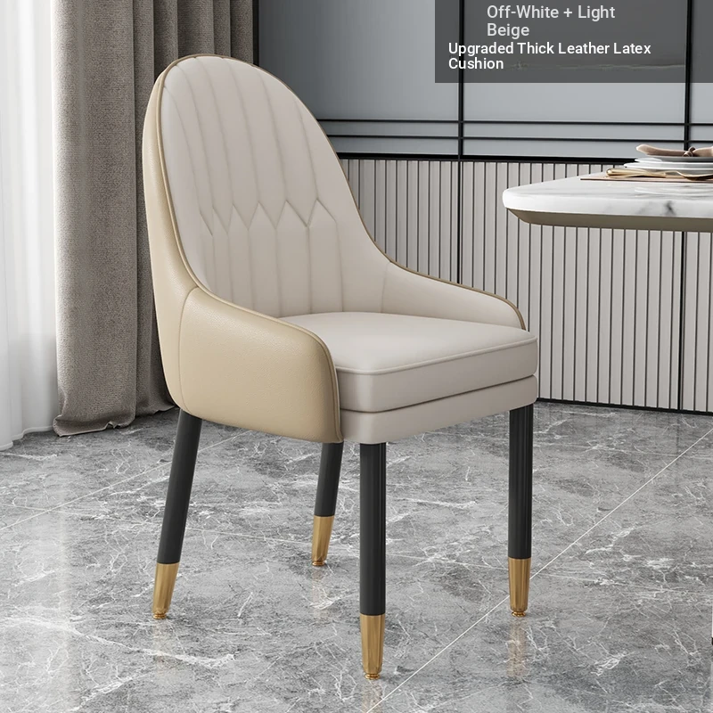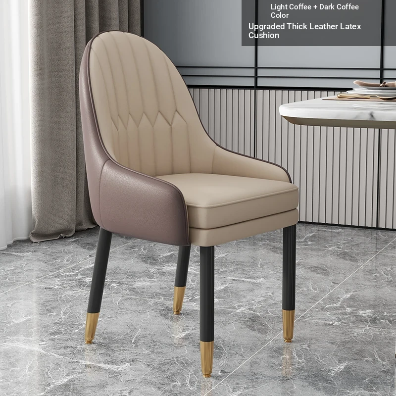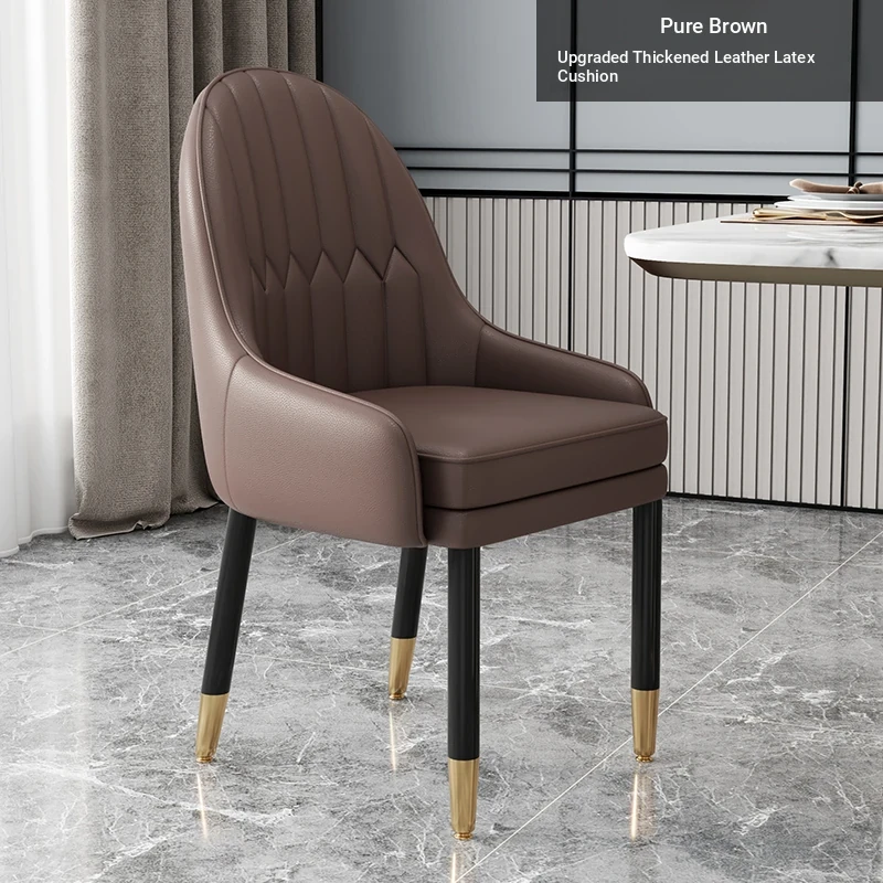Elegant Dining Chair - Modern Nordic Solid Wood High-Back Chair for Home, Restaurant, and Mahjong Table, Upholstered in Genuine Leather, Perfect for Stylish Dining Experiences
