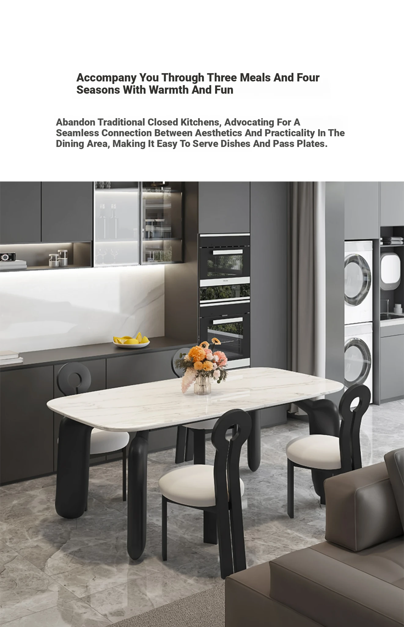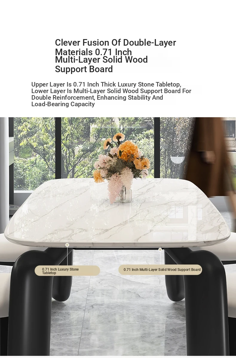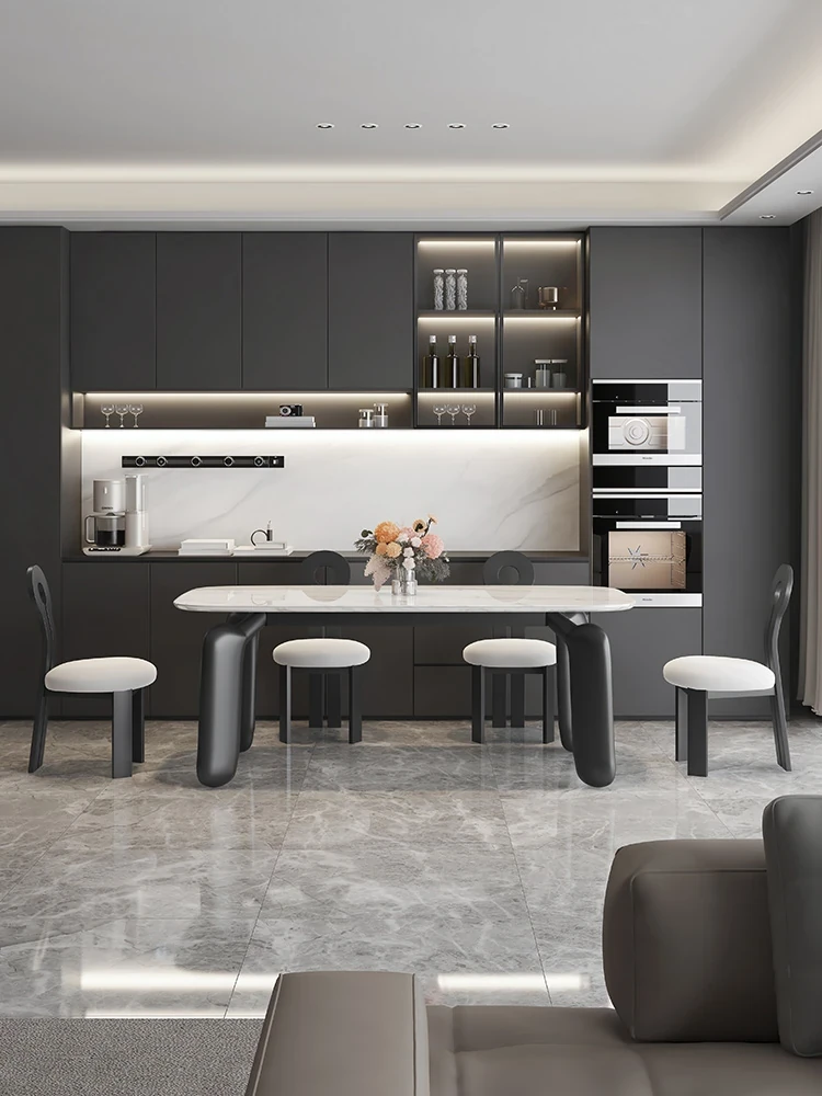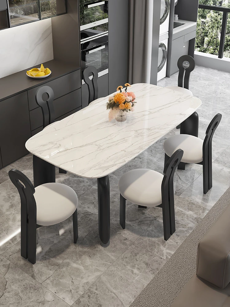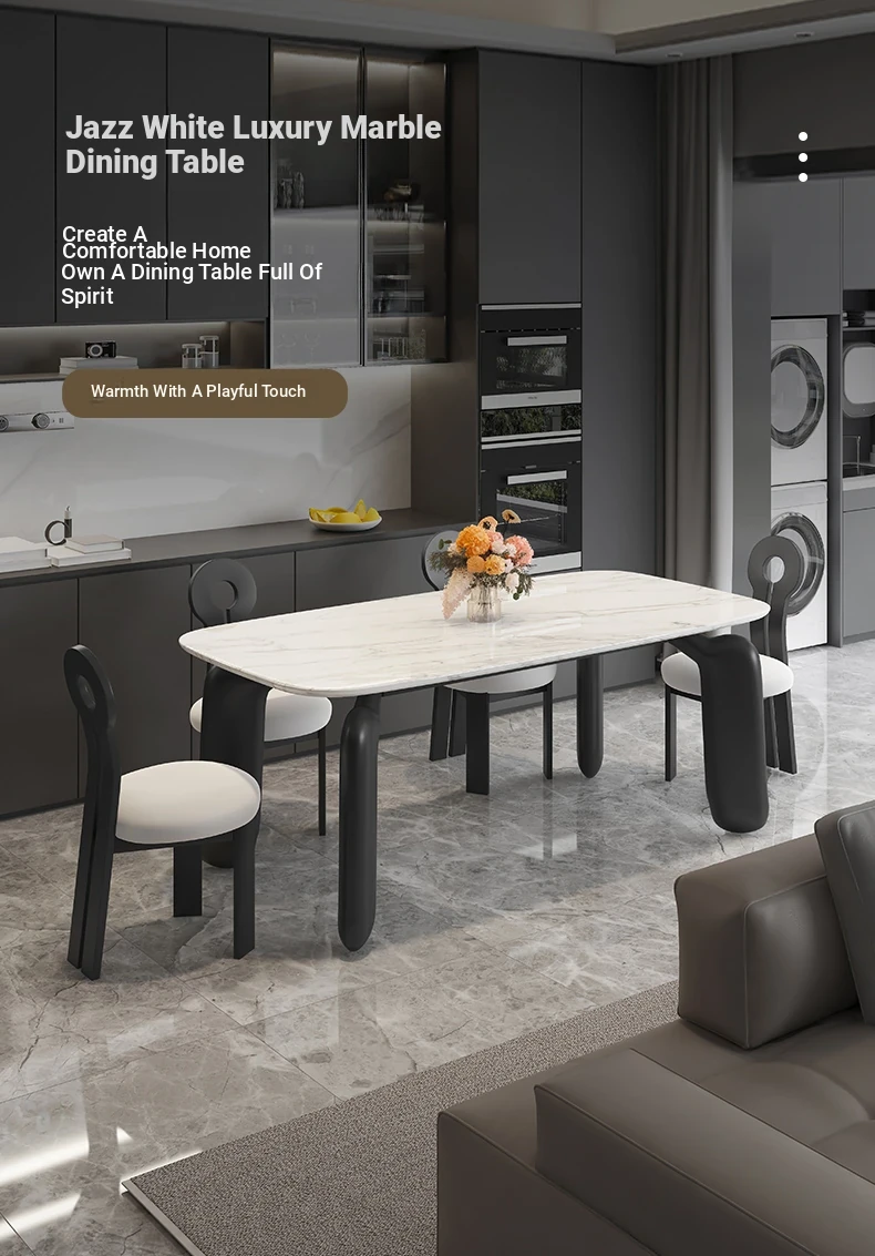 Elegant Imported Jazz White Luxury Marble Dining Table Set - High-End Rectangular White Marble Table with Chairs for Home Use