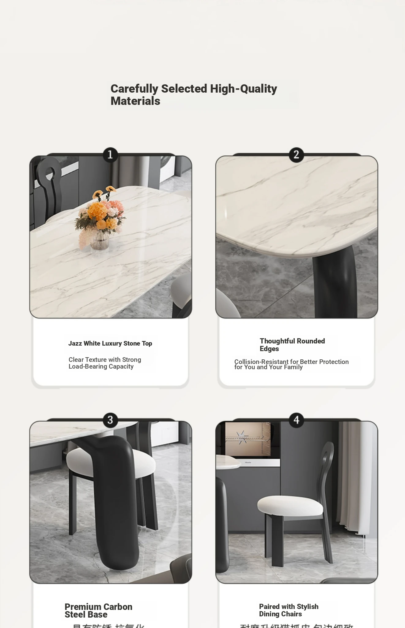 Jazz White Natural Luxury Stone Dining Table + Dining Chair * 4
