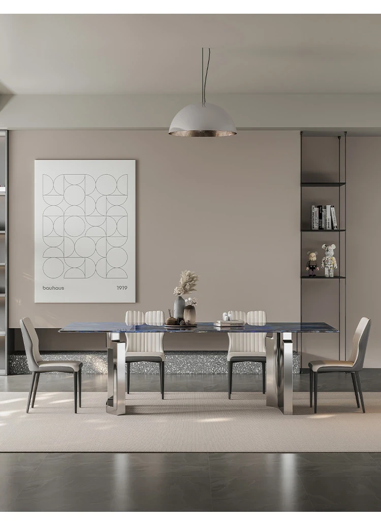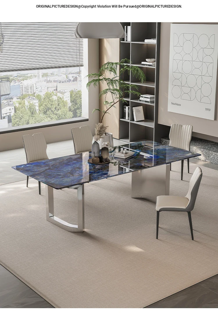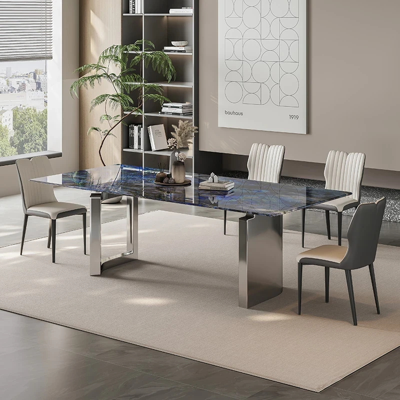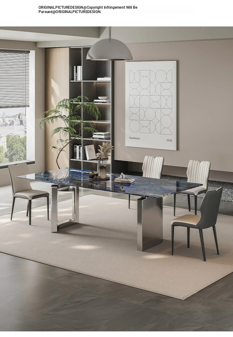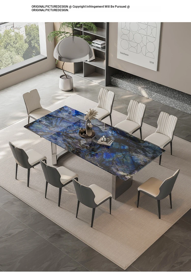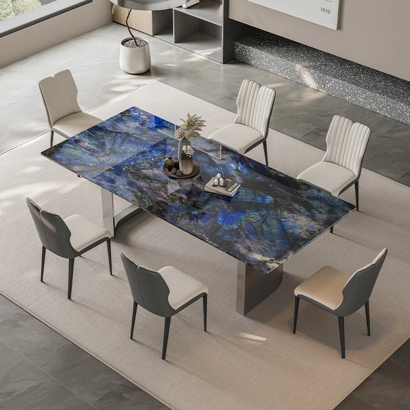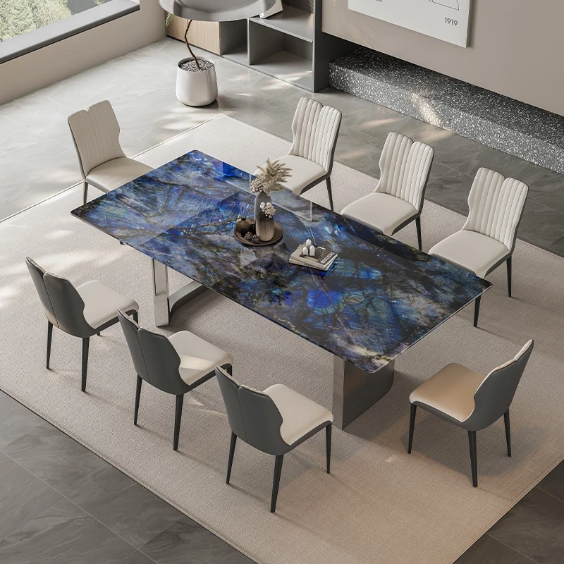 Elegant Italian Minimalist Luxury Natural Microcrystalline Stone Fendi Dining Table Set with Blue Jade Chairs - Perfect for Chic Home Décor