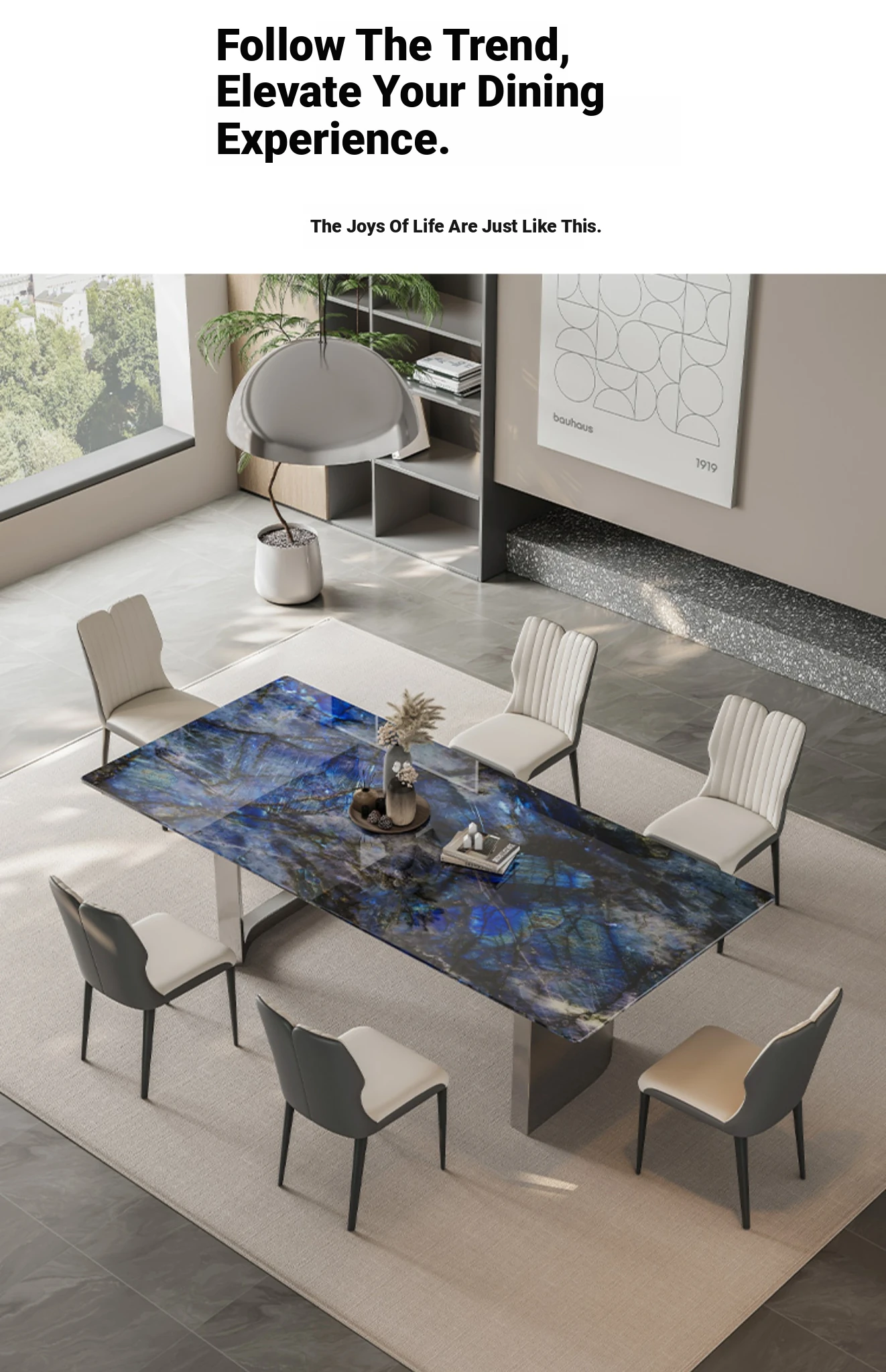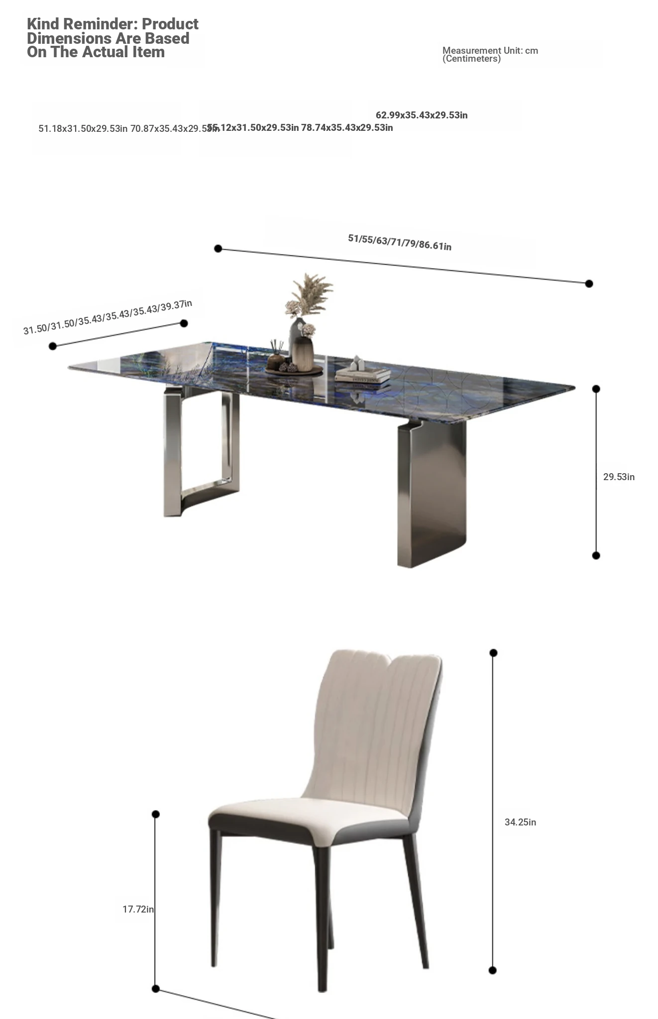 Blue Emerald · Natural Microlite Dining Table + Dining Chair * 6