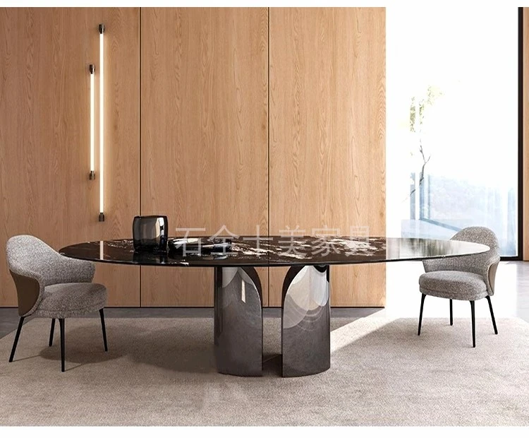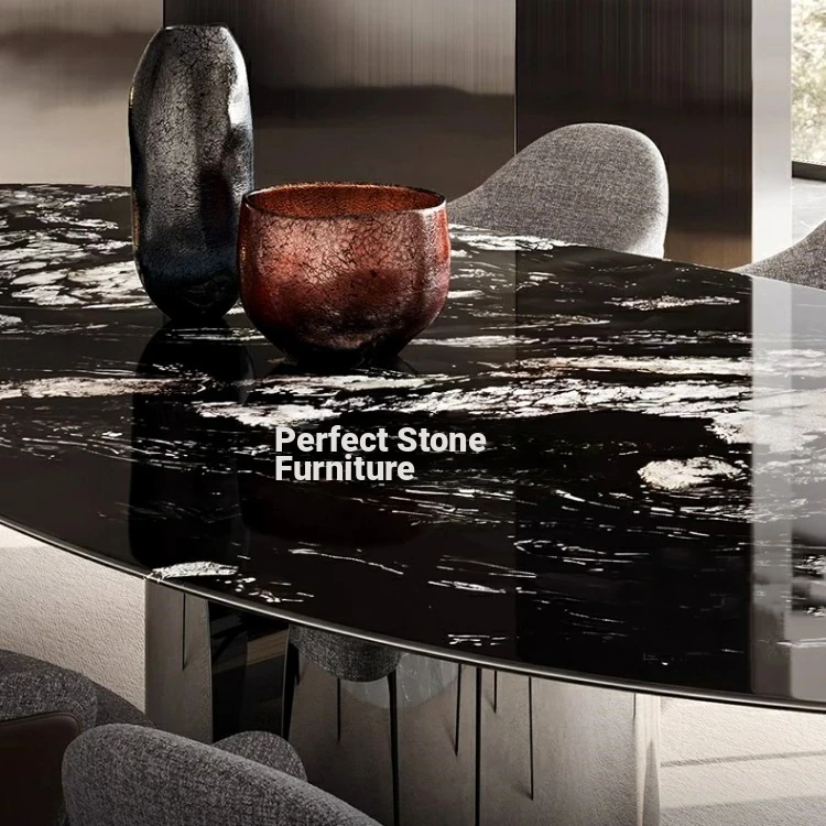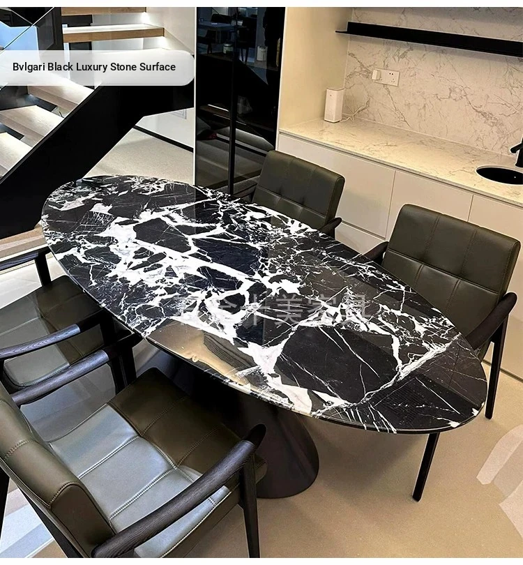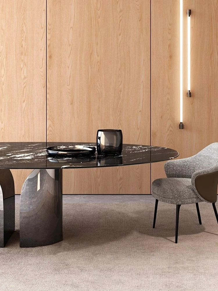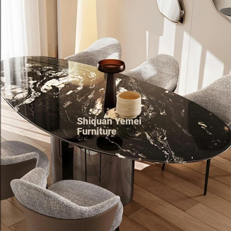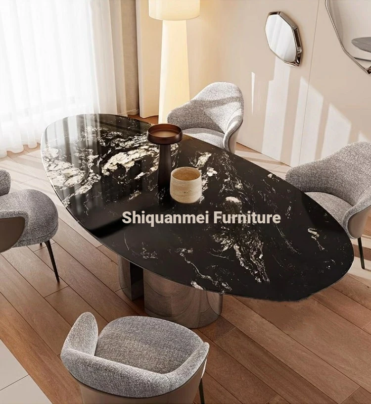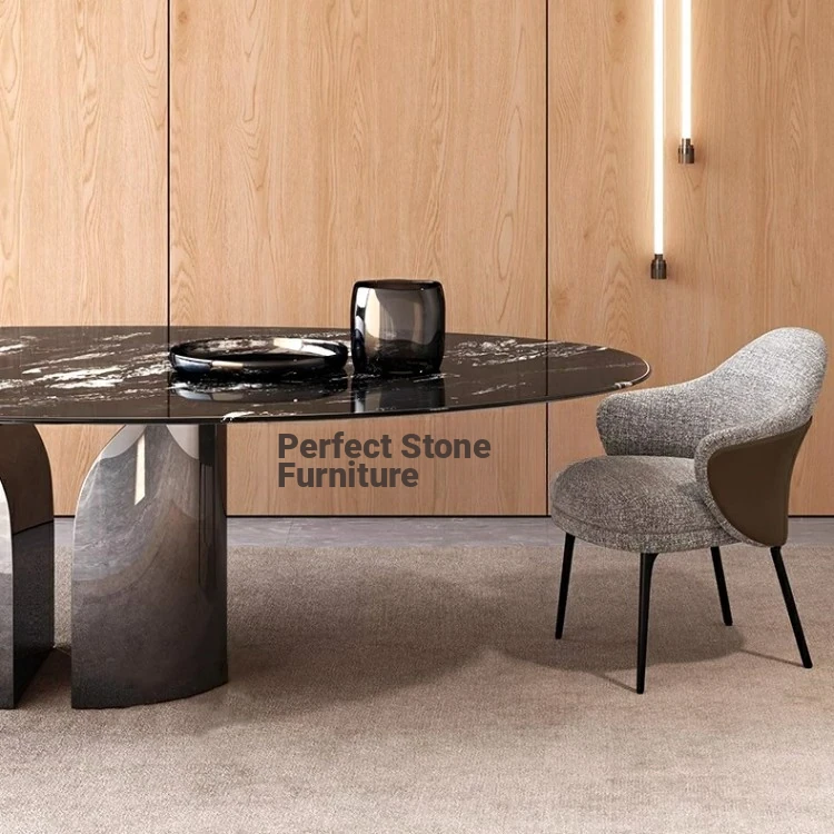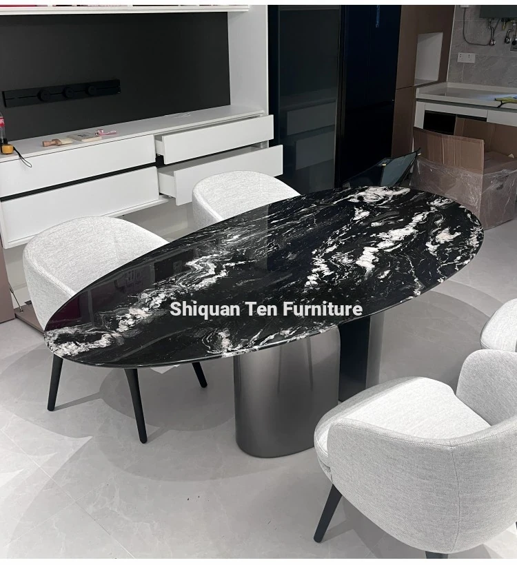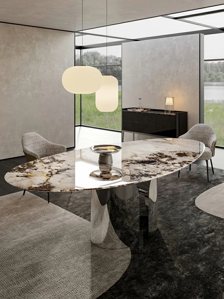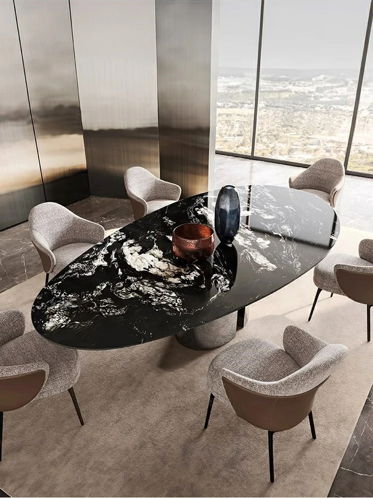 Elegant Italian Oval Natural Marble Dining Table - Luxury Droplet Shape Designer Table for a Chic Dining Experience