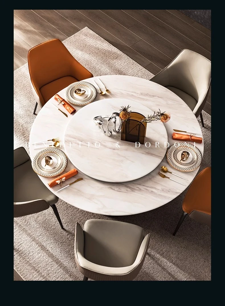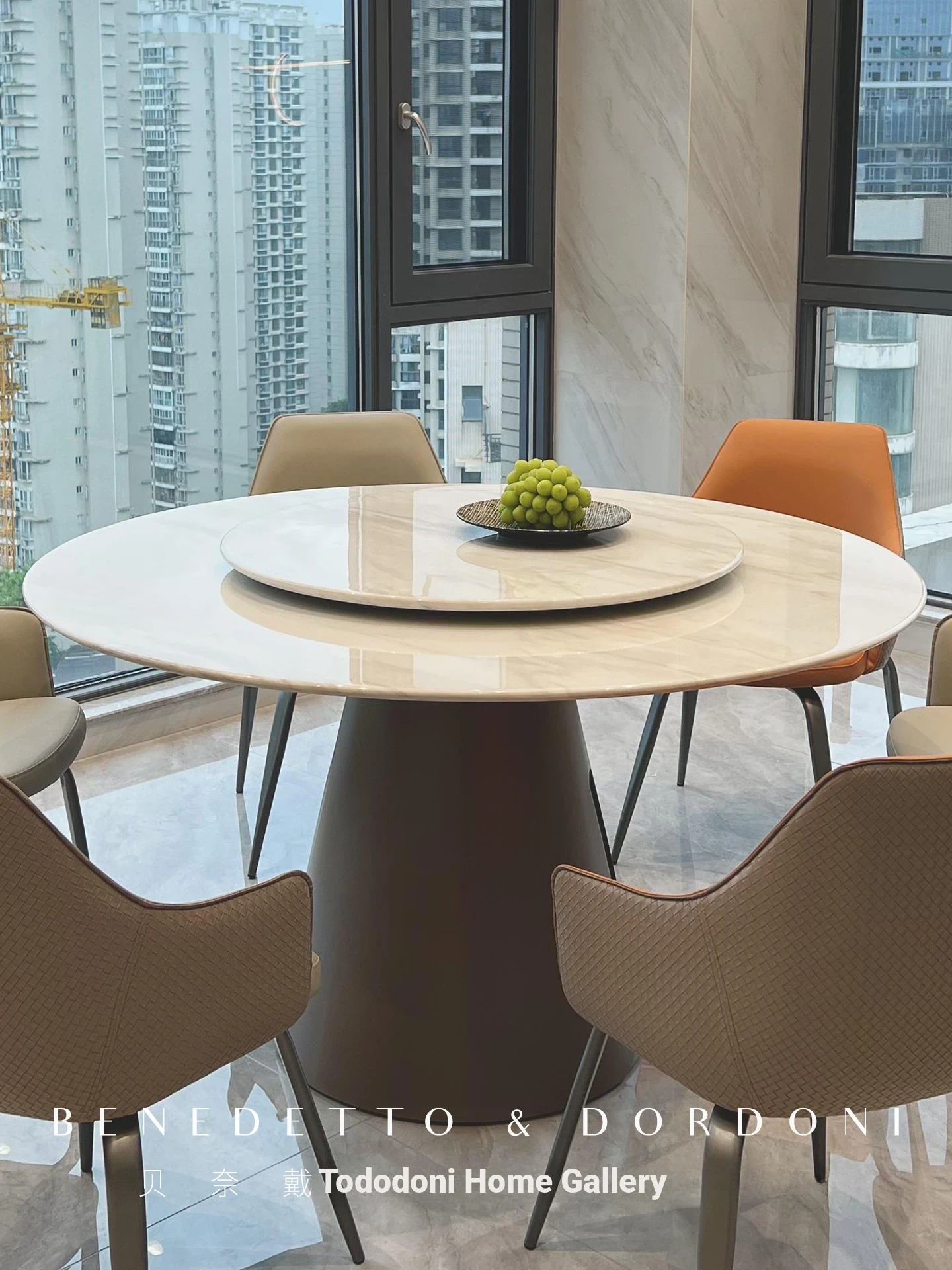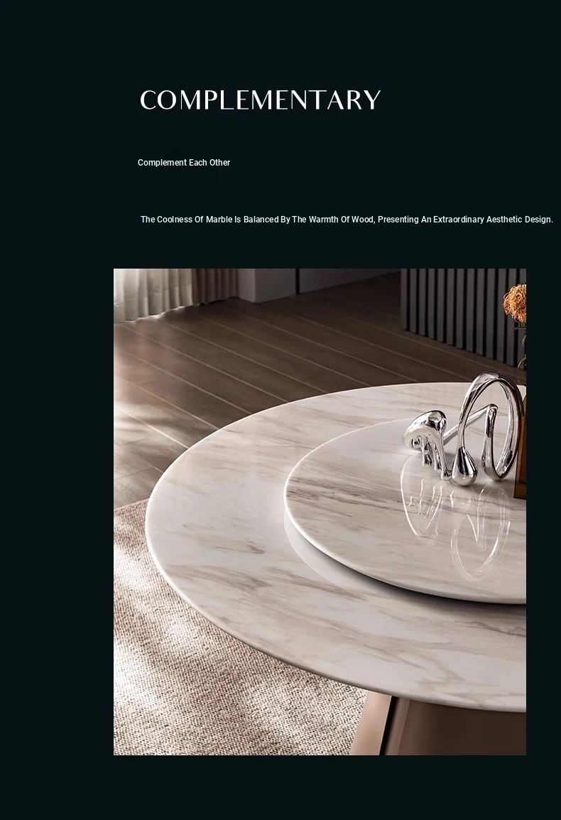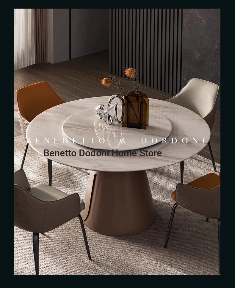 Elegant Italian-Inspired Round Dining Table Set with Natural Marble Top and Rotating Base - Premium High-End Design for Home Use, Perfect for Stylish Dining Experiences