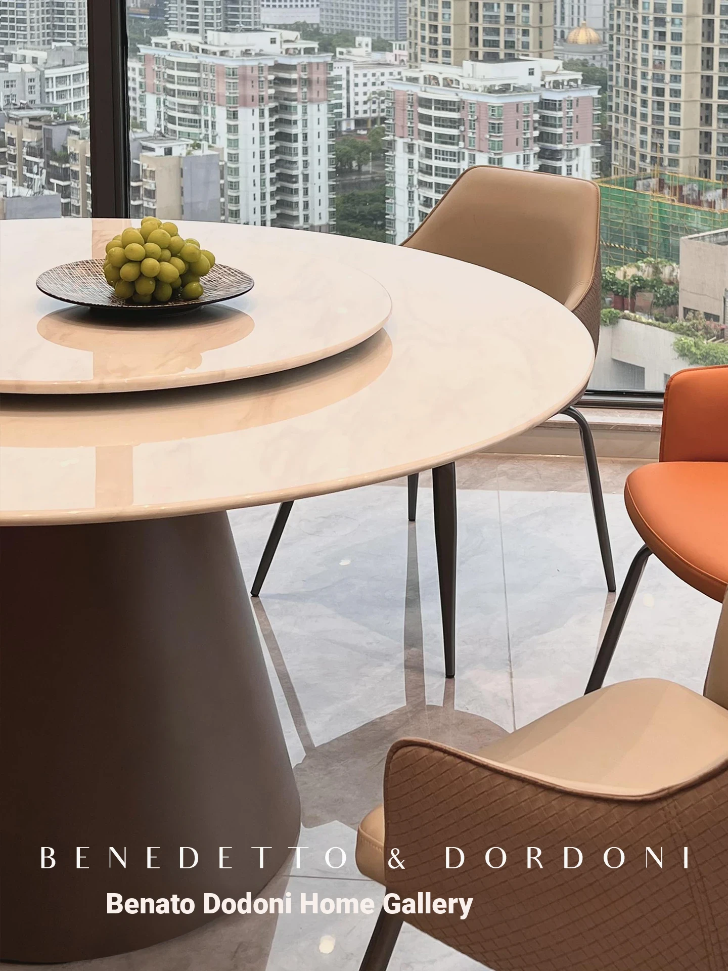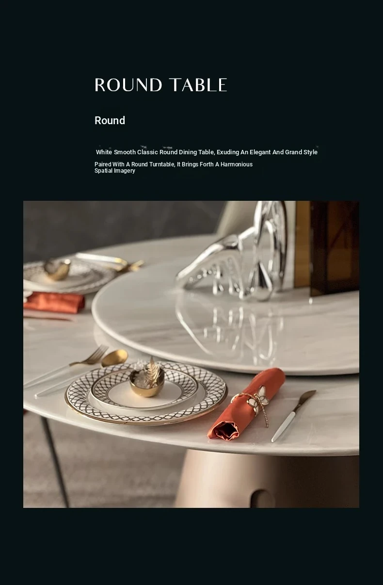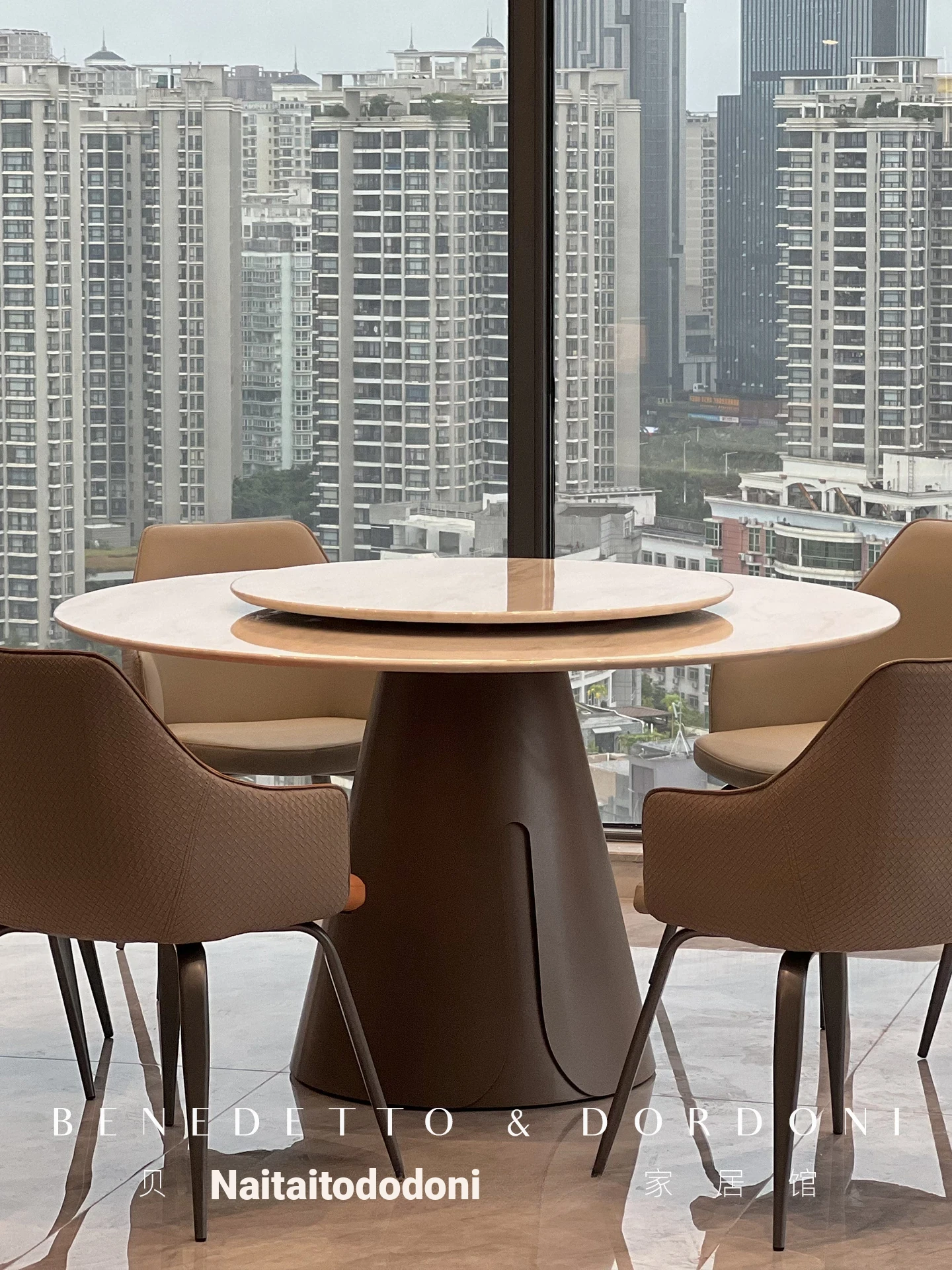 Elegant Italian-Inspired Round Dining Table Set with Natural Marble Top and Rotating Base - Premium High-End Design for Home Use, Perfect for Stylish Dining Experiences