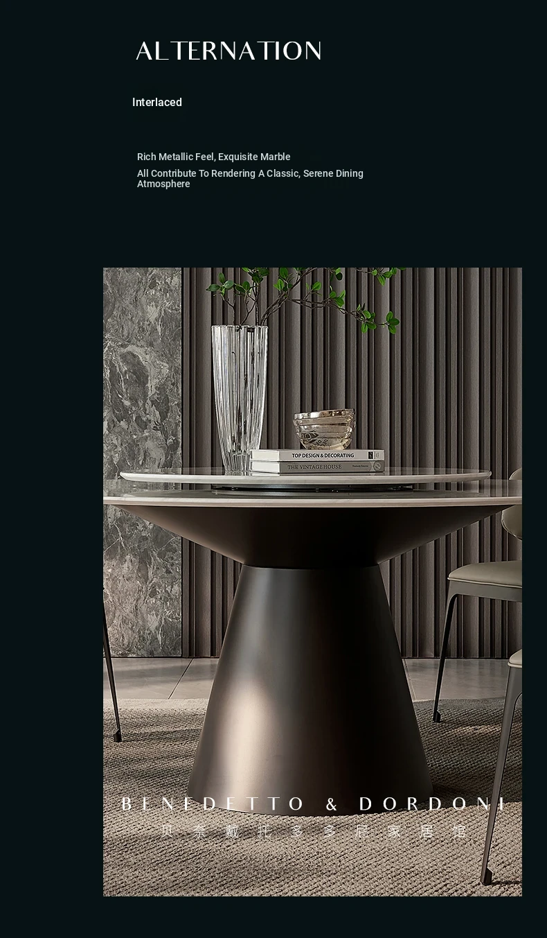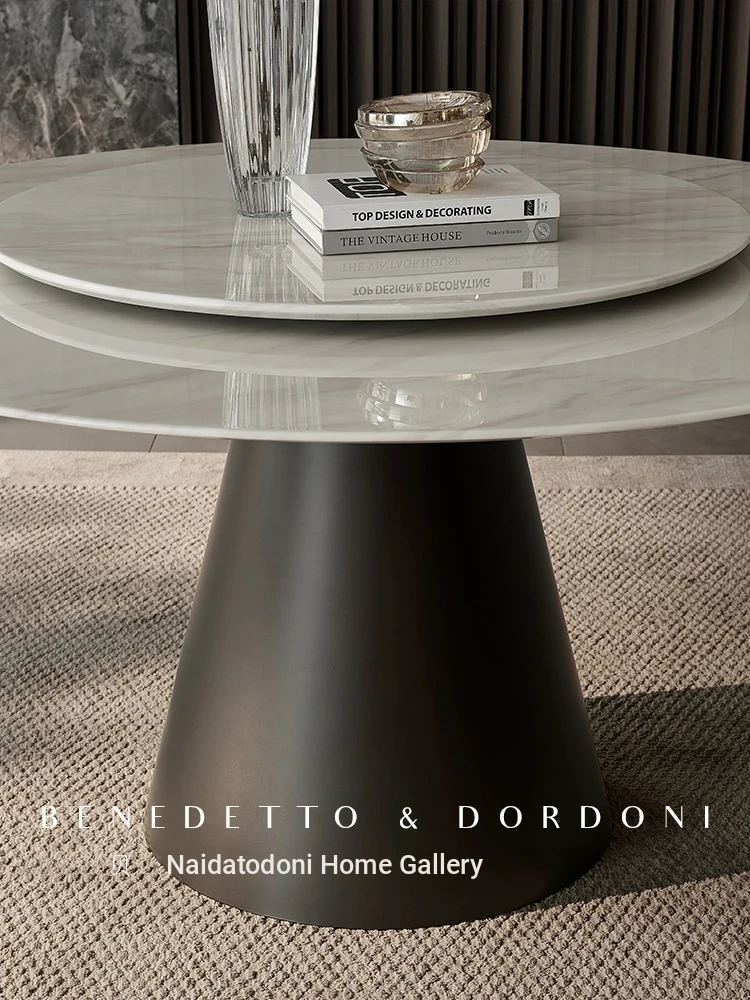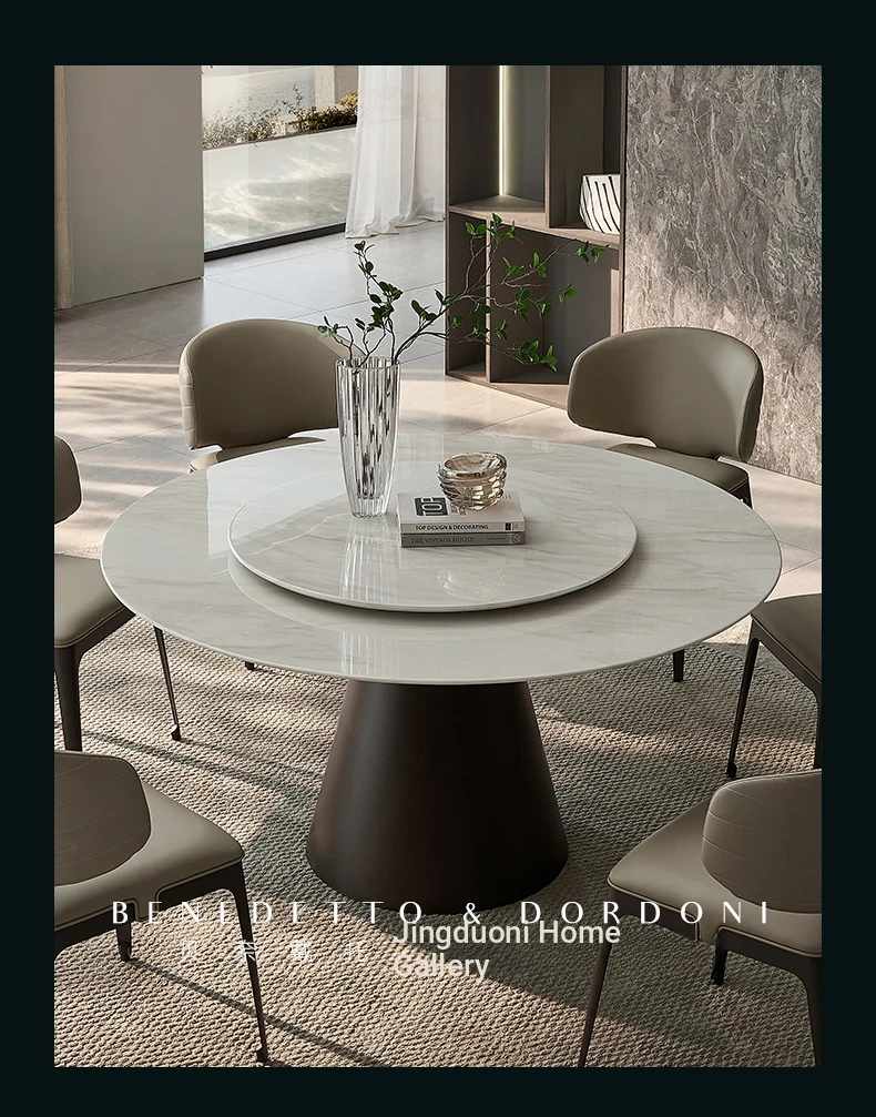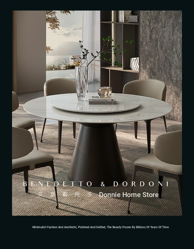 Elegant Marble Round Dining Table with Lazy Susan - High-End Italian Minimalist Design for Luxury Villas and Home Use - New 2025 Model