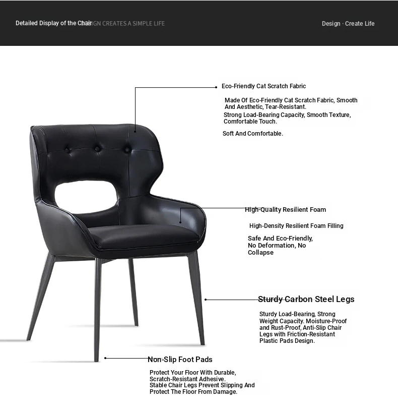Elegant Modern Dining Chair with Soft Backrest - Luxurious and Comfortable Home Upholstered Chair for Casual Dining and Relaxation - Perfect for Conversations and Stylish Interiors