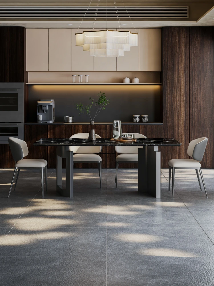 Elegant Natural Black Rose Marble Dining Table - Minimalist Italian Design for Luxurious Home Decor - Rectangular High-End Dining Table