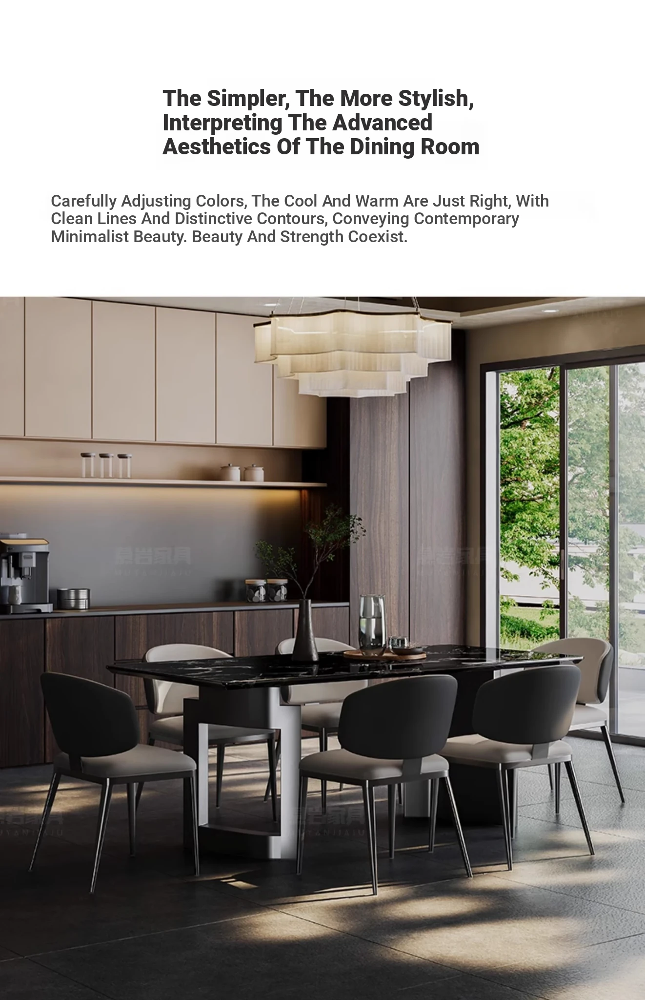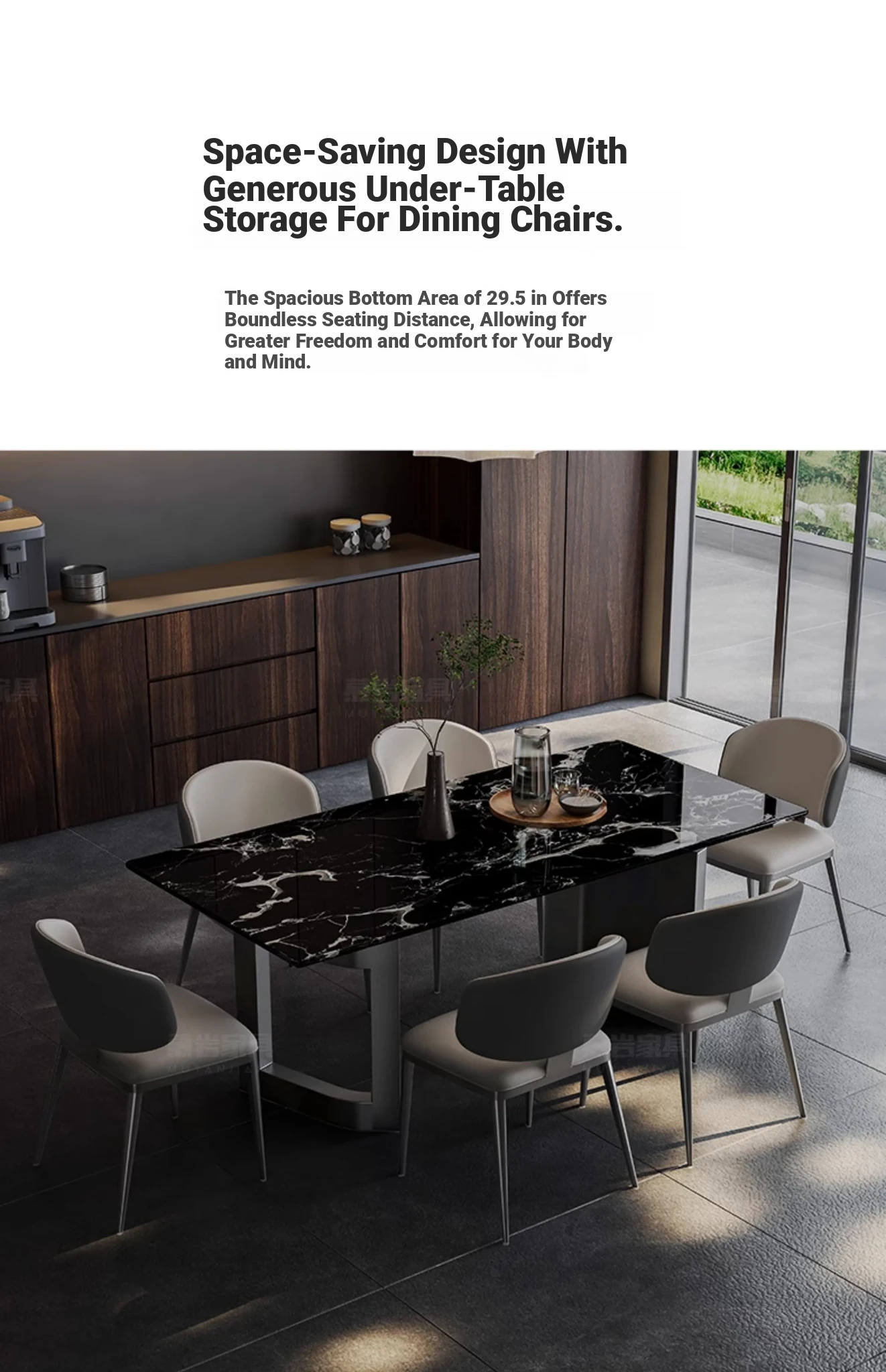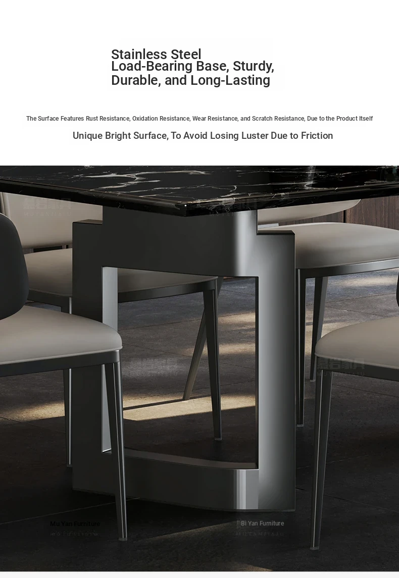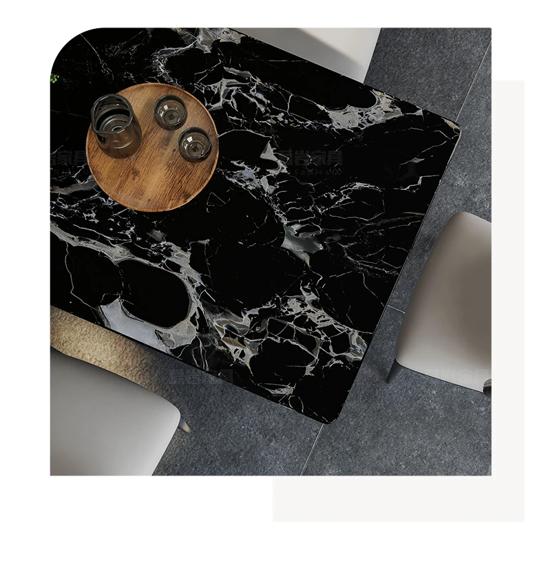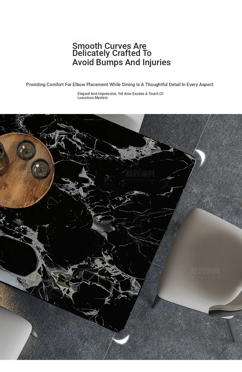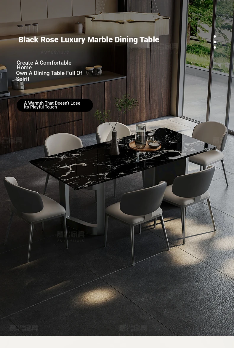[A] [a] Black Rose natural luxury stone dining table + leather dining chair * 8