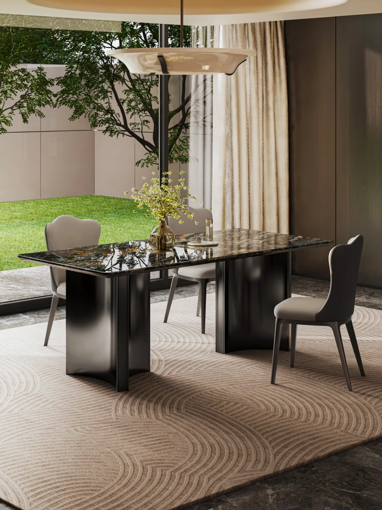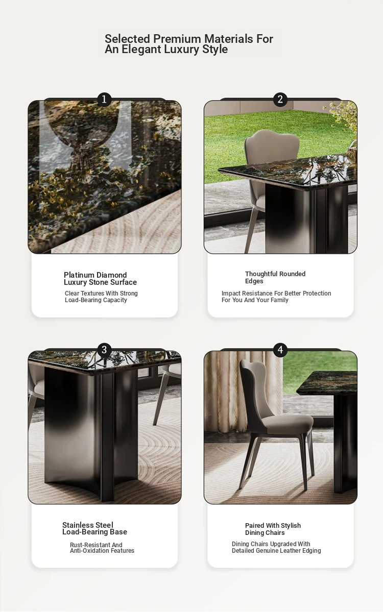 [Class A Import] Platinum Diamond Natural Luxury Stone Dining Table [One Fake Penalty Ten] + Leather Cloud Dining Chair * 4