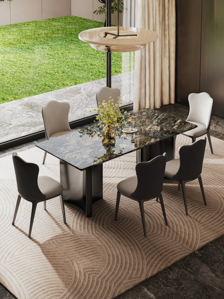 [Class A Import] Platinum Diamond Natural Luxury Stone Dining Table [Fake One Penalty Ten] + Leather Cloud Dining Chair * 8