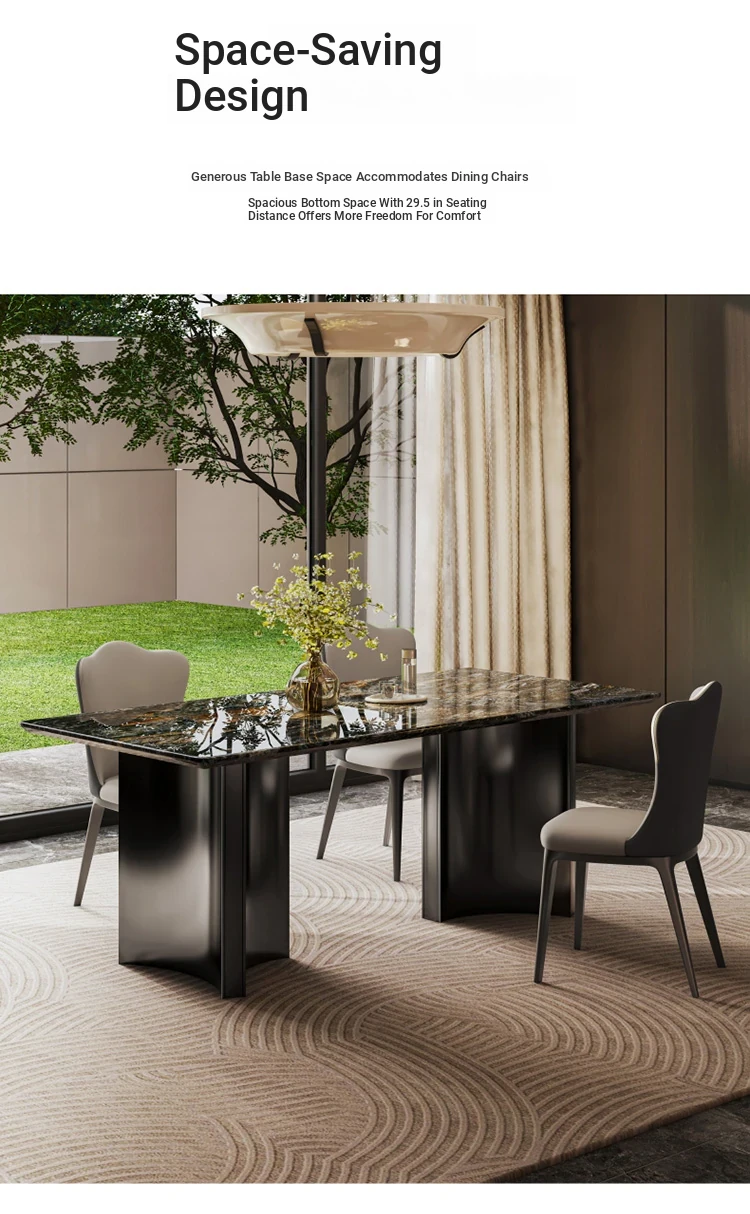 Elegant Natural Platinum Diamond Marble Dining Table Set - Italian Style Luxury for Small Spaces, Premium Rectangular Design with Chairs, Perfect for Upscale Home Dining.
