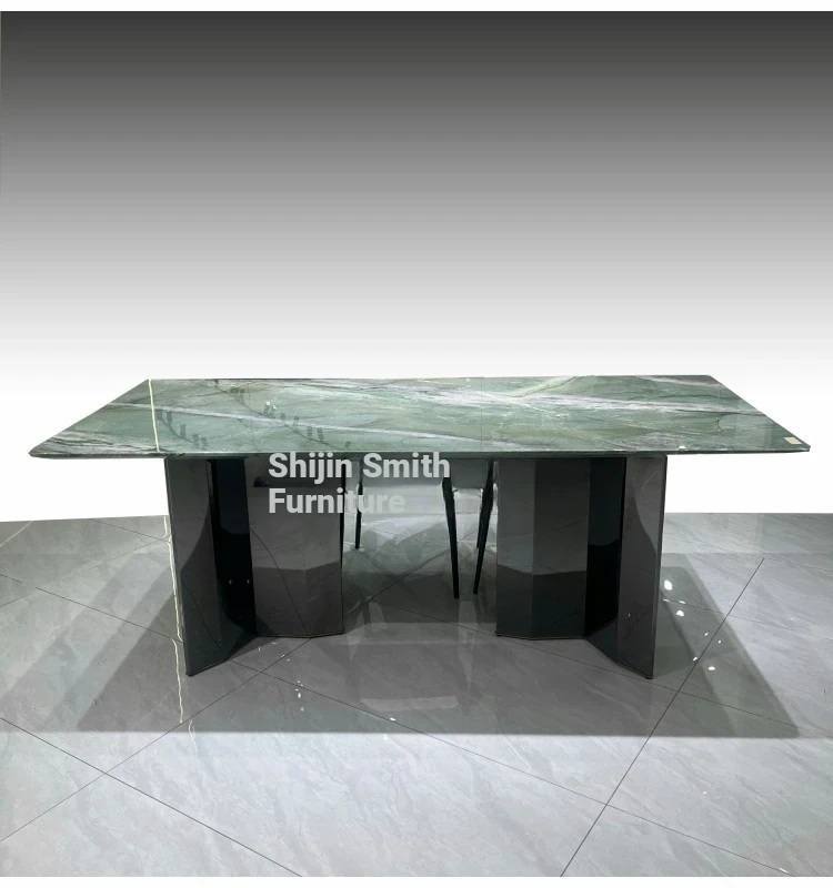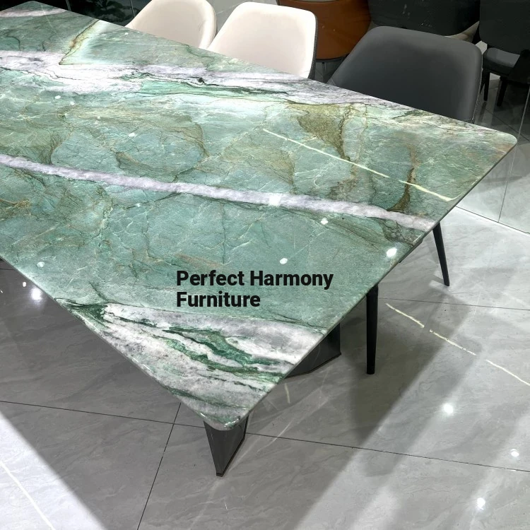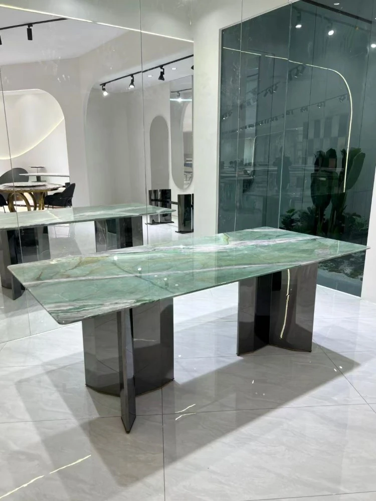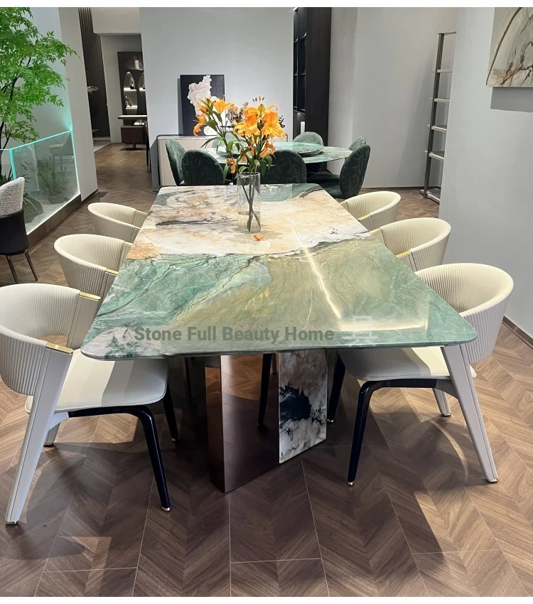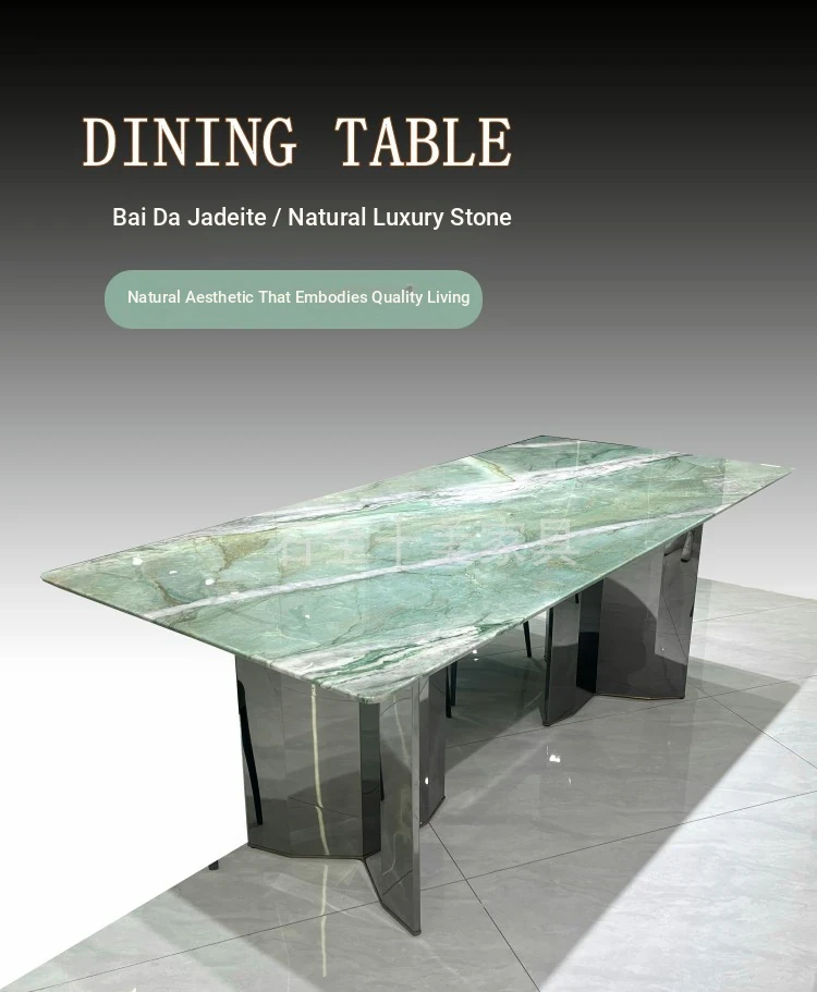 Elegant Rectangular Natural Marble Dining Table - Luxurious Jadeite Stone for Upscale Homes and Villas, Perfect for Sophisticated Living