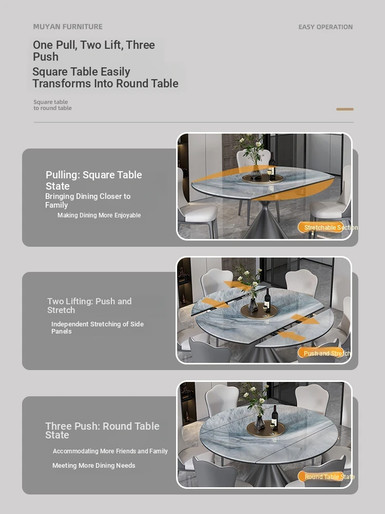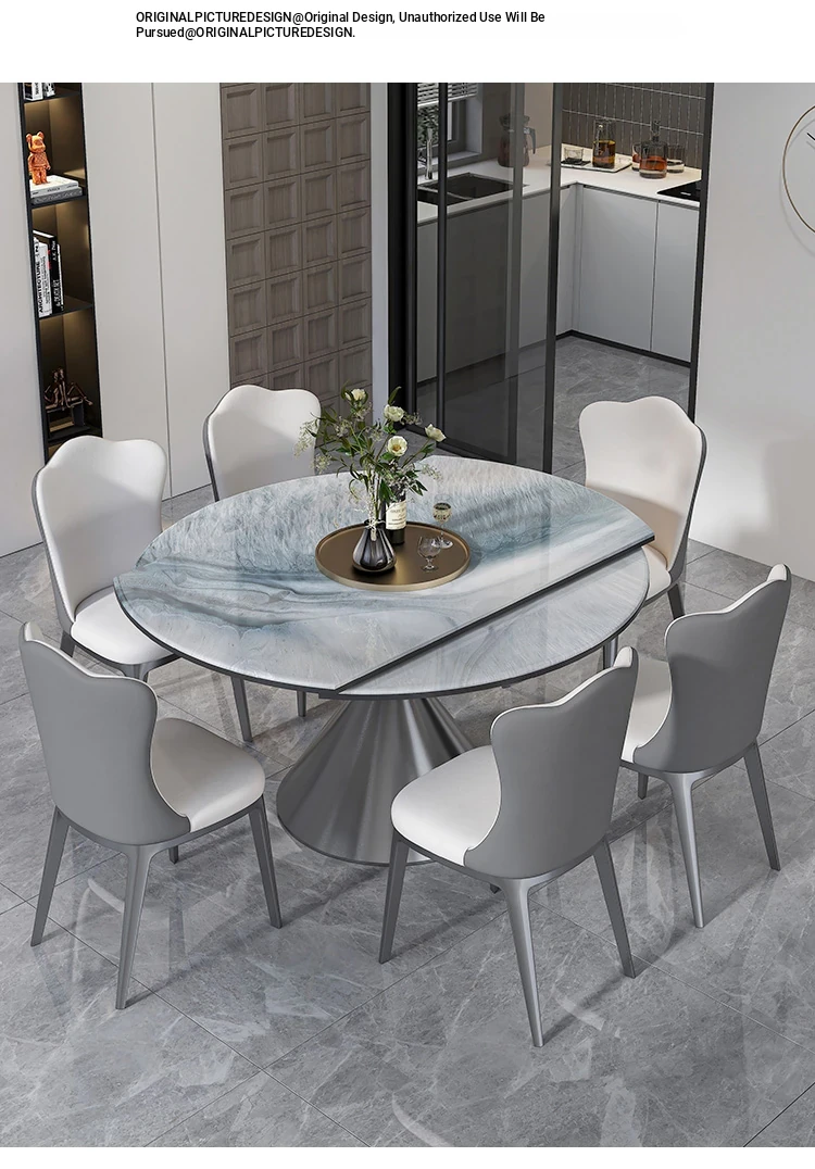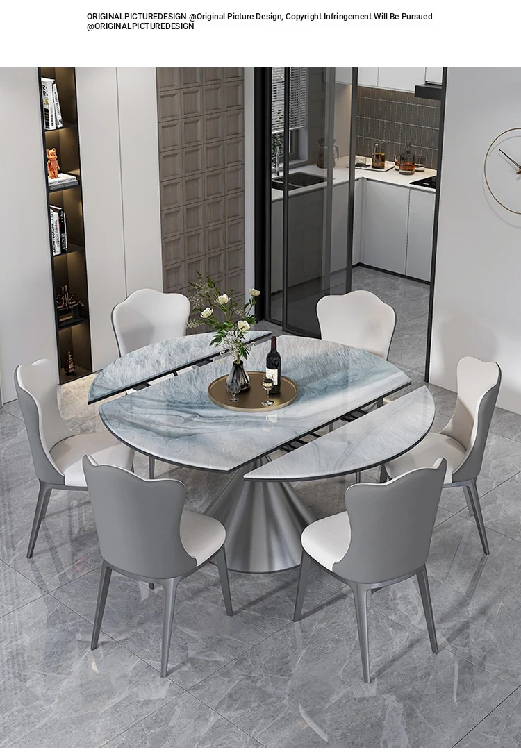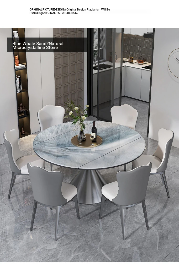 Expandable Microcrystalline Stone Dining Table for Small Homes - Luxury Round or Square Marble Table for Elegant Dining Experience