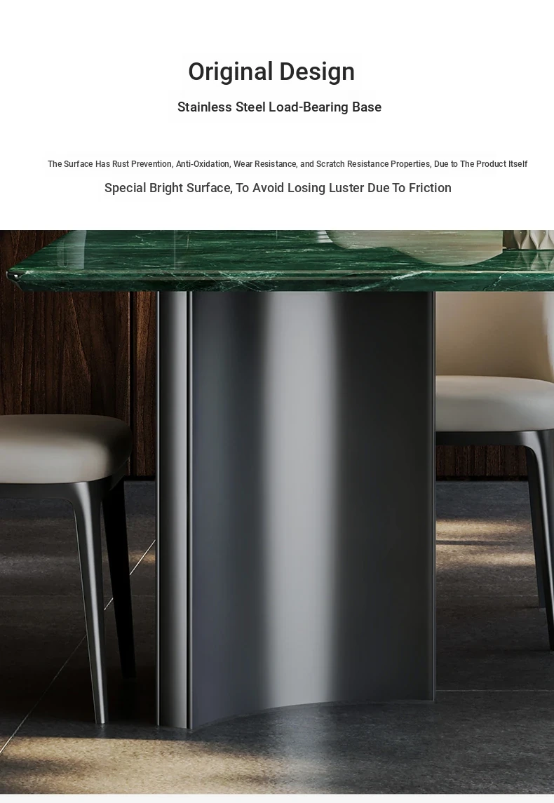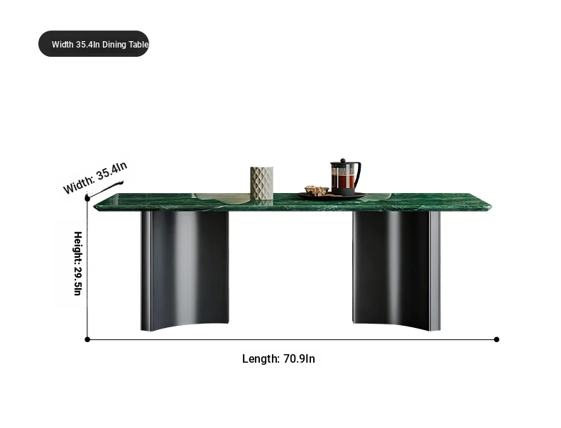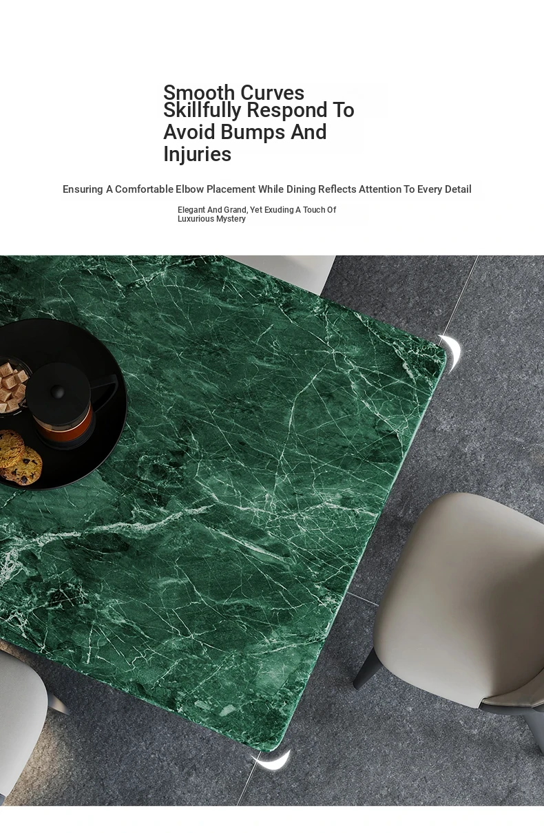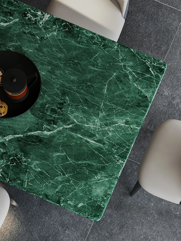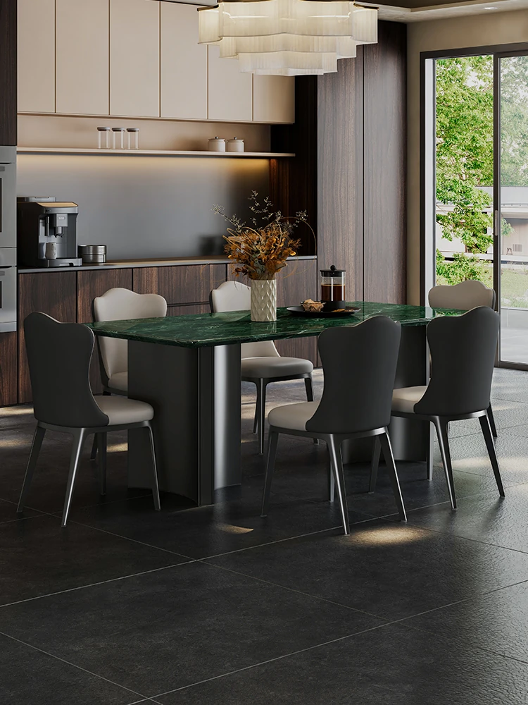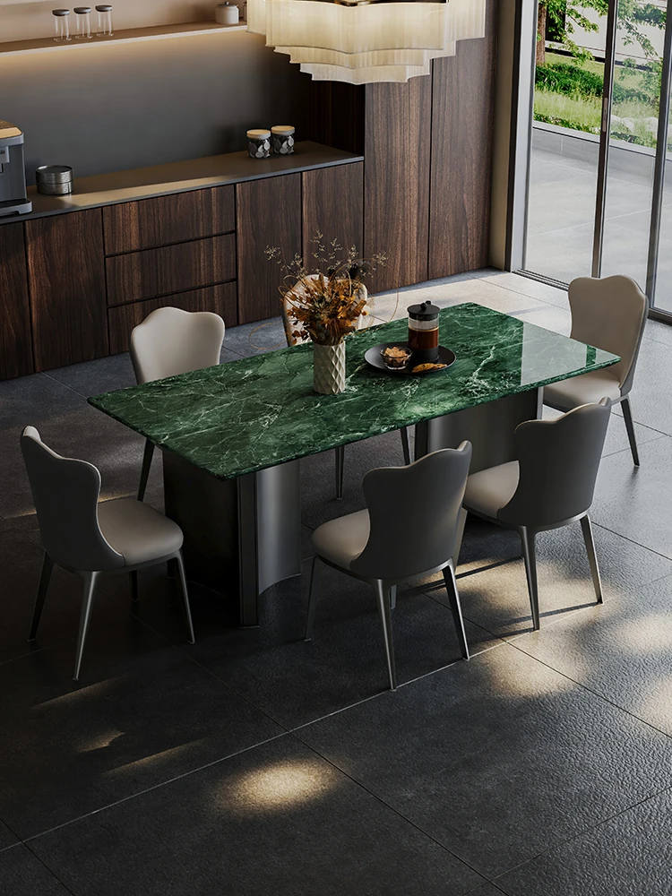 Exquisite Imported Natural Green Marble Dining Table - Luxurious Rectangular Design for Home Use, Ideal for High-End Villas and Spacious Apartments