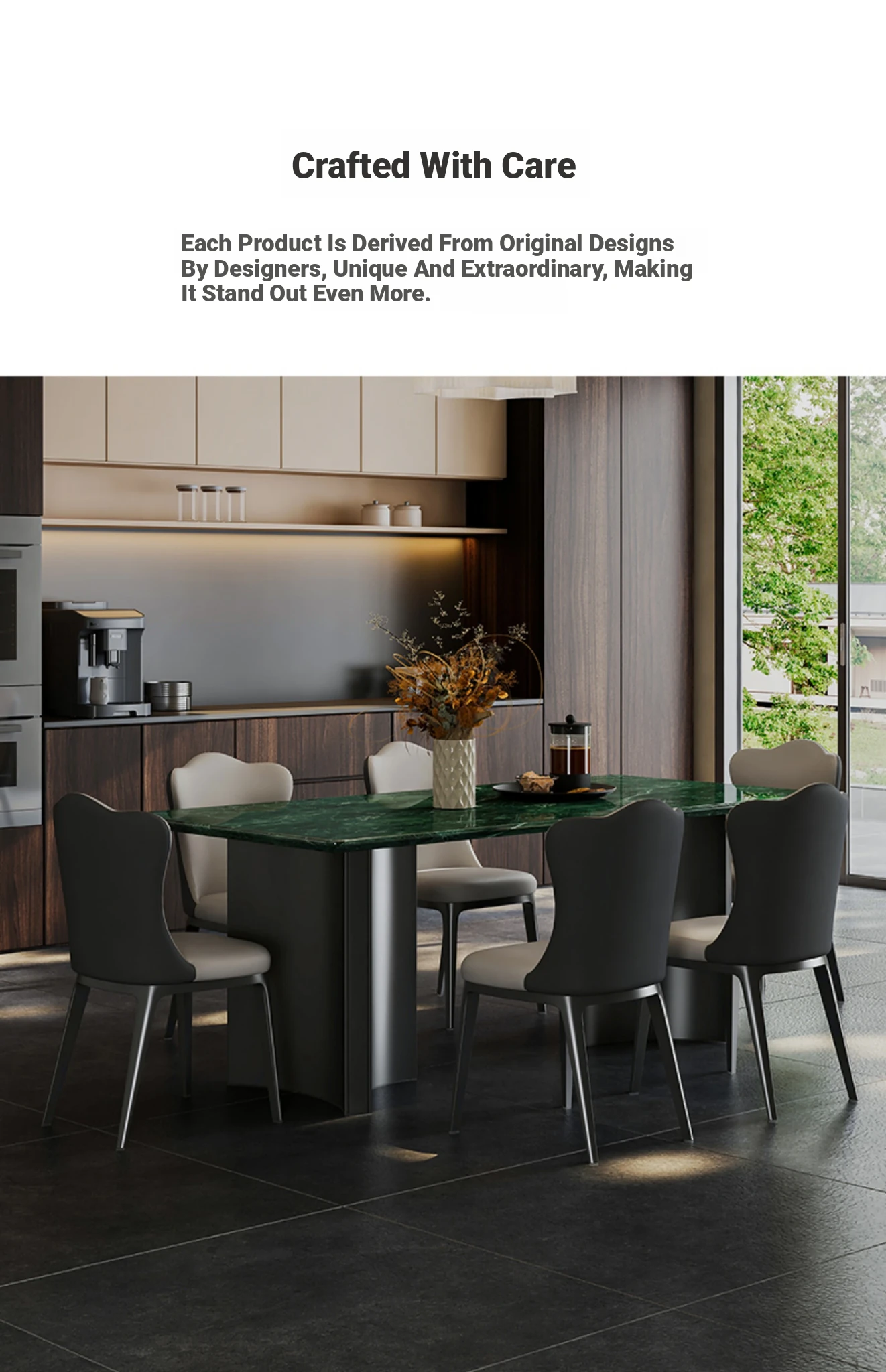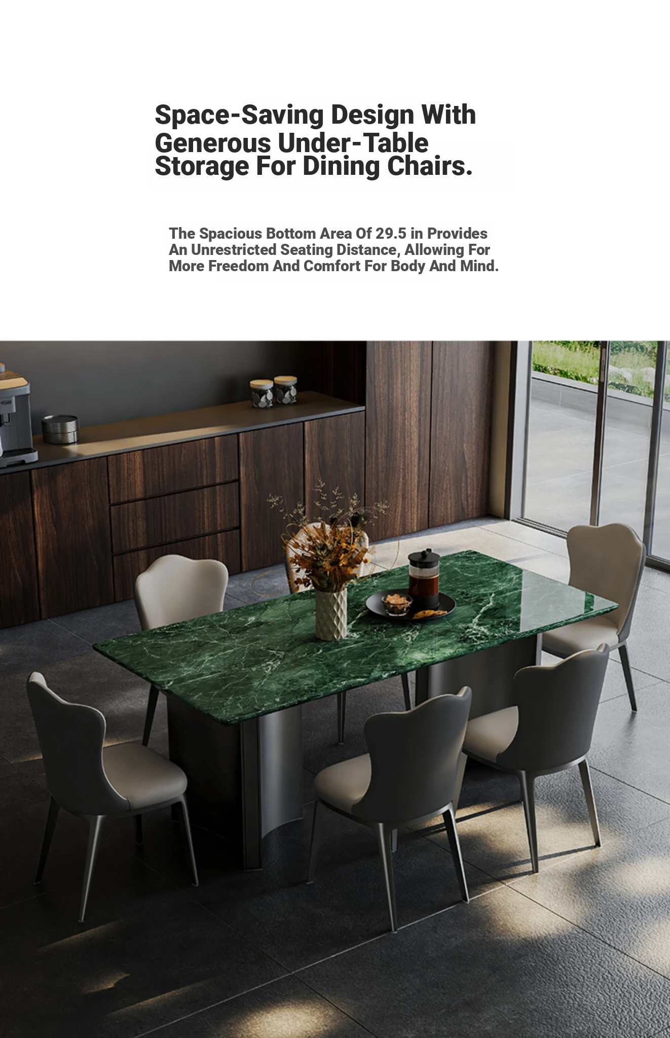 [Import] Large Flower Green Natural Luxury Stone Dining Table + Leather Dining Chair * 6 [Ten Penalties for Fake]]