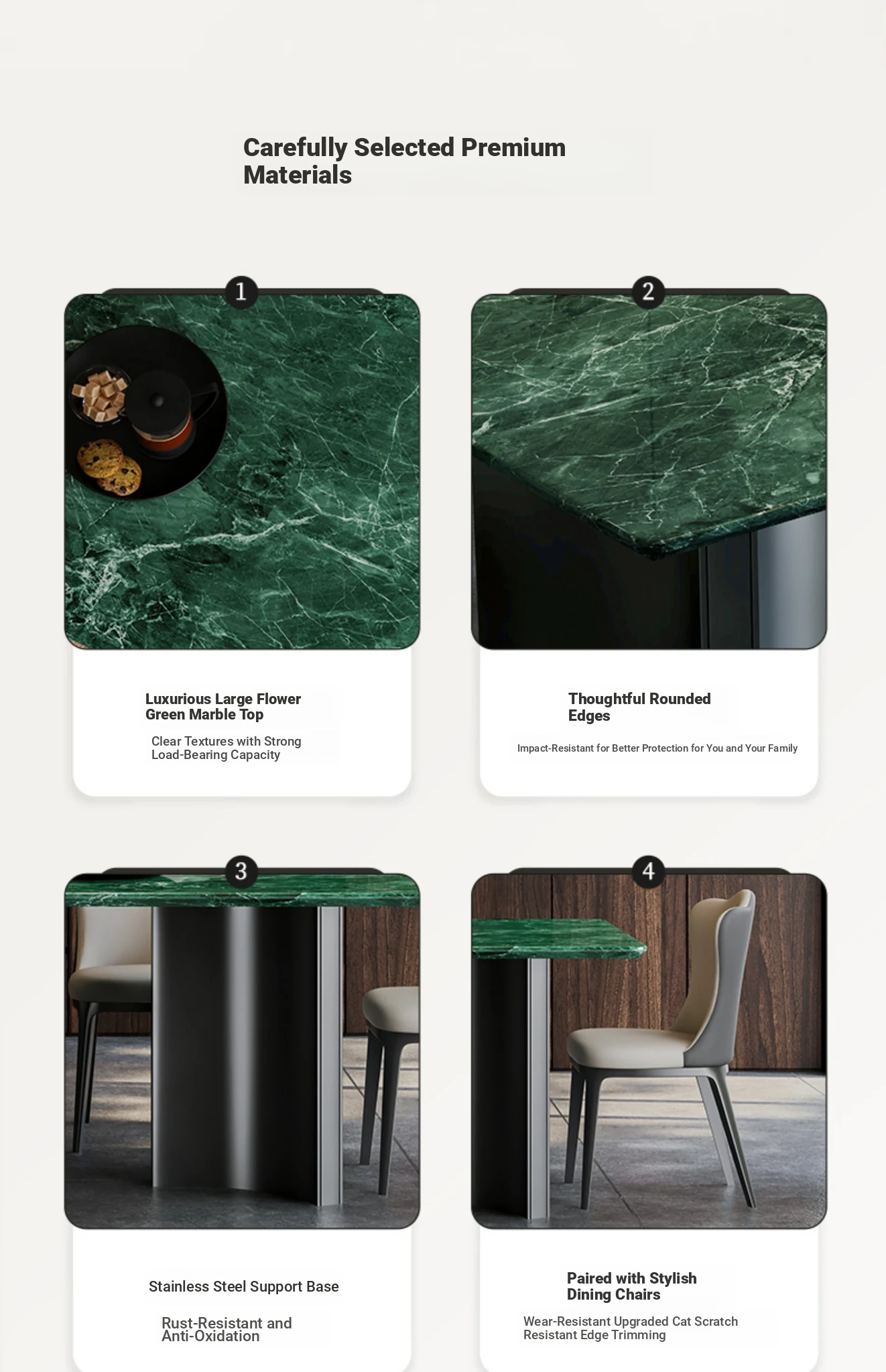 [Import] Large Flower Green Natural Luxury Stone Dining Table + Leather Dining Chair * 4 [Ten Penalties for Fake]]
