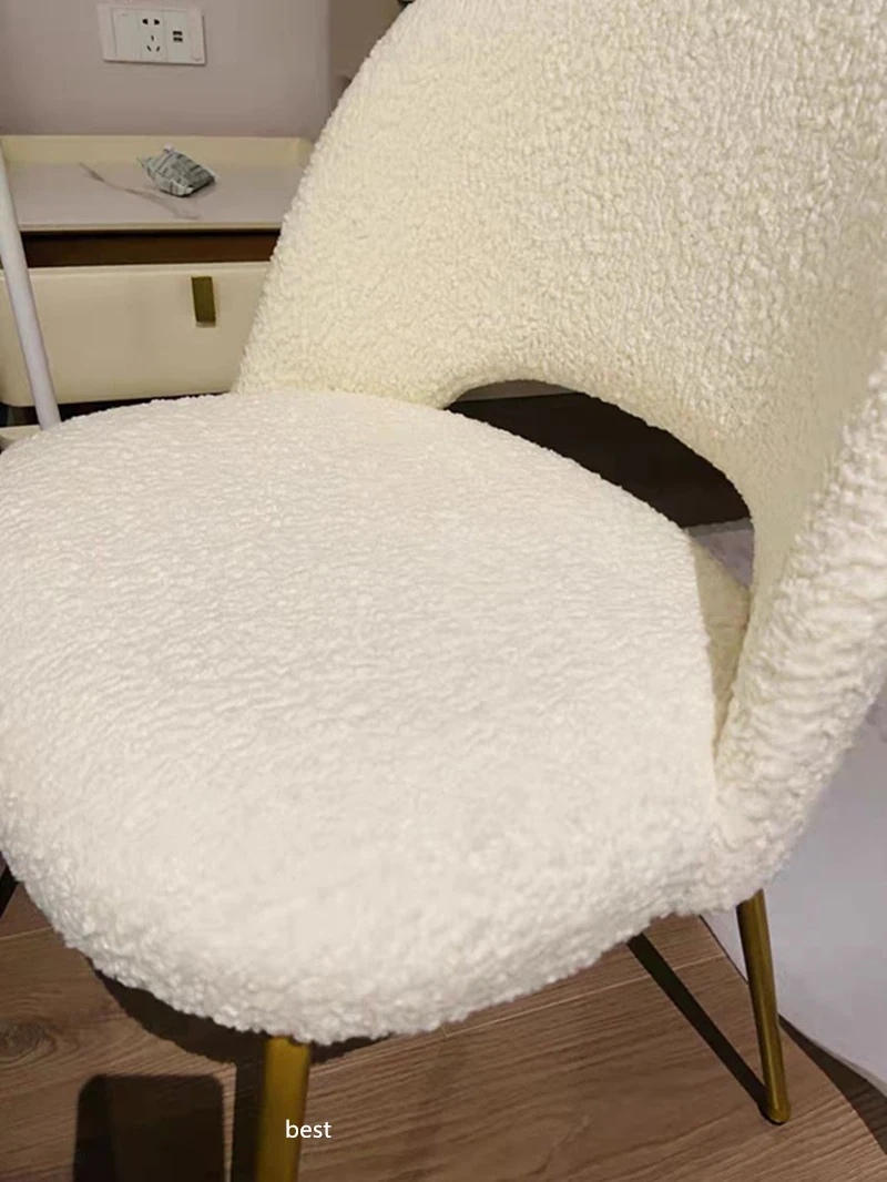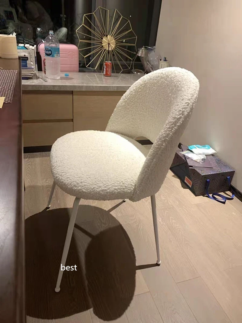 Factory Direct Sale: Luxurious Nordic Lamb Wool Upholstery Chair - Perfect for Small Spaces! Ideal for Makeup, Bedroom, or Dining Use.